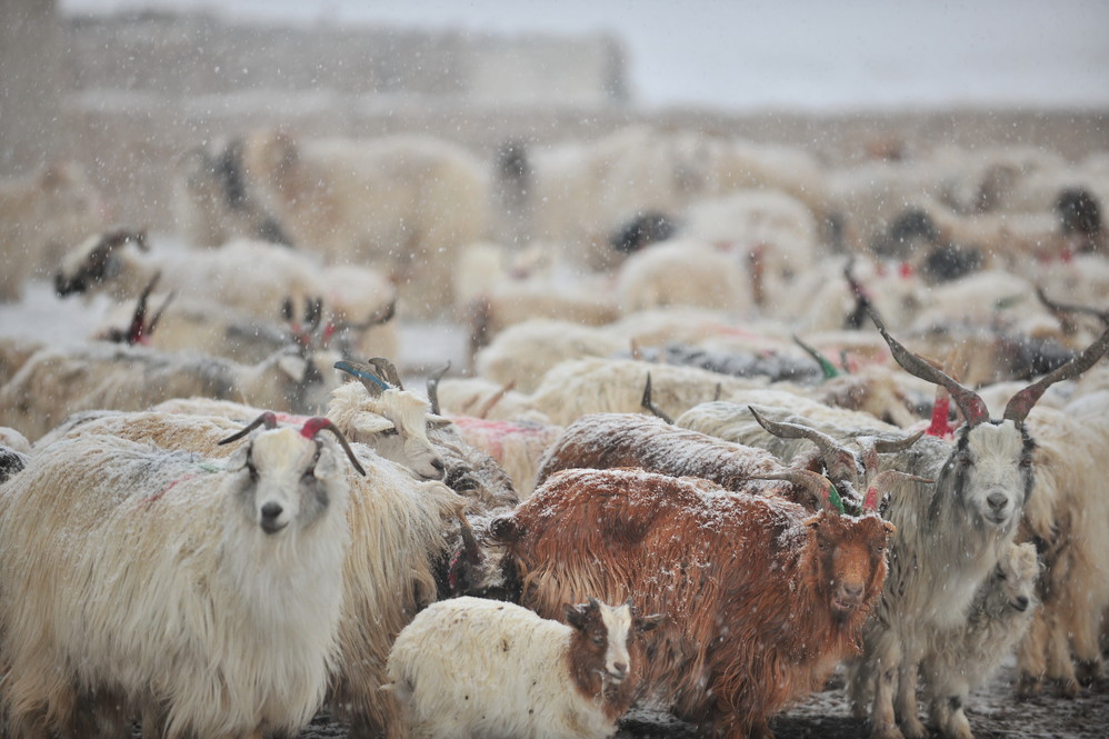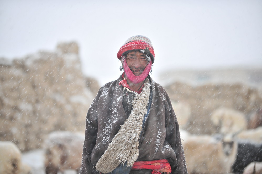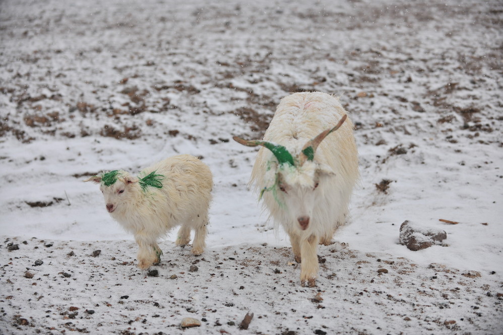 5月31日,亚热至措勤 。早上起床,外面仍在下着雪,我们的车上已经是厚厚一层雪。和老婆去公厕,雪中一群羊引起了注意。回来后,和bobi一起去看和拍他们,牧羊人也很友善,我们要拍他时也非常配合,几只公羊围着bobi不肯走,不知道为什么那么喜欢他!