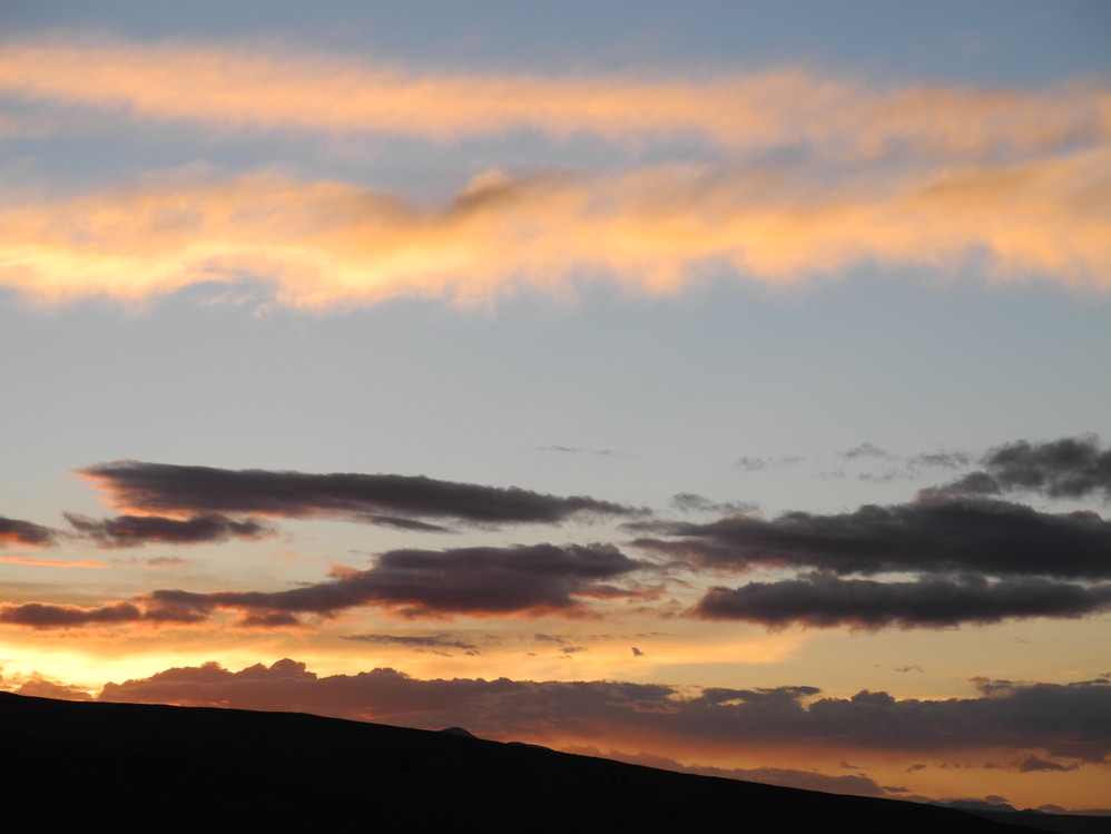 在第八医院买了一袋氧气后,我们重新从日喀则 起程,沿南线向阿里 走。由于心里仍然有阴影,再加上我们浪费了一些时间,我们放弃了上珠峰的计划,直接向萨嘎 走。海拔在上升,空气越发干燥,路上已经越来越少树木,但我们心情却越来越好。拉孜 的午餐和萨嘎 的晚餐都很滋味,而且肠胃可以接受食物,很舒服。途中海拔升级,由于担心氧气袋会爆,还把氧气放了一些出来。