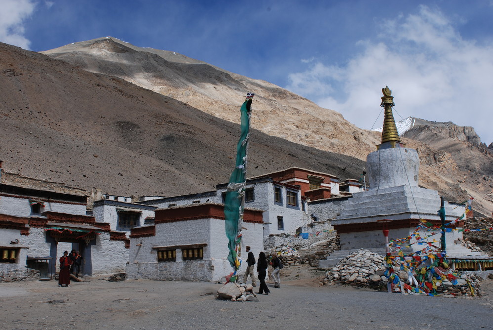 中午在岗嘎镇吃过中午饭,继续向前,走过一段近路,全是鹅卵石路,颠得半死,然后再走过一段泥路,终于看到绒布寺,这是最高海拔的寺庙!拍过照片,往前走几百米,大本营也到啦!