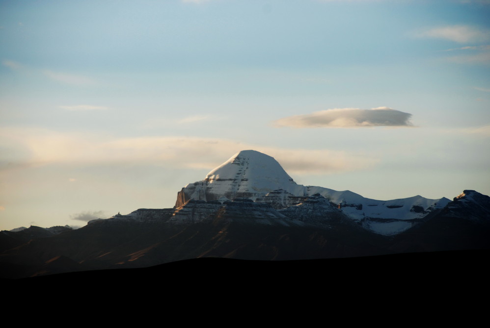 冈仁波齐 简介和传说2:藏北牧人的《赞山词》说到:“北有神山40座,南有神山40座,是南北各部的保护神。东方的玛加崩热山、西方的冈嘎底斯山、南部的卡瓦嘎布山、北部的念青唐古拉山 ,这四座山是全藏的守护神。有三个外溢湖,上丁 的玛旁雍错湖,像金灯的酥油往外溢;中部的纳木错 秋莫,像银杯的净水往外溢;下方的赤雄加姆湖,像螺盘的牛奶往外溢,这三个湖也是全藏的守护神。”另外在西藏 ,苯日山、墨尔多、卡瓦格博峰、阿尼玛卿山、冈仁波齐 、尕朵觉沃、雅拉山和喜玛拉雅也被称为藏地八大神山,围绕着他们的传奇故事在西藏 久久流传。冈仁波齐 神山通称雪灵山,在普兰 县圣湖玛旁雍错以北,是冈底斯山的主峰,海拔6656米。藏语意为“神灵之山”。在玛旁雍错之北,峰顶四季冰雪覆盖,山峰四壁对称,呈圆冠金字塔关,峰上空常是白云缭绕,愈发显得神秘莫测。转山一圈距离为51公里,周围有八座寺庙。阿里 地区的四大河——马泉河、狮泉河 、象泉河、孔雀河,就从冈仁波齐 四方流下,同时,各教派认为他们的神都与这座山峰有着联系。在佛教中,它是由金、银、琉璃和玻璃四宝构成,由七金山 七香海及十二部洲所围成的“须弥山 ”,象征着整个佛教宇宙的中心;在藏族苯教中,它是三百六十位神灵居住之山,祖师辛绕米沃且从天而降时,便落在此山巅,在印度 教中,它是“凯拉斯”,是“湿婆的天堂”。多种教派共同奉冈仁波齐 峰为世界的中心,每年都有很多信徒前来朝拜。印度 、尼泊尔 、锡金等国的信徒不远千里,历尽辛苦来到这里,沿途磕头祈祷,绕山拜罢之后,才算功德圆满,了却了宿愿,尤以马年为盛。冈仁波齐 峰遗留下的胜迹不胜枚举,是众教心中的圣地。