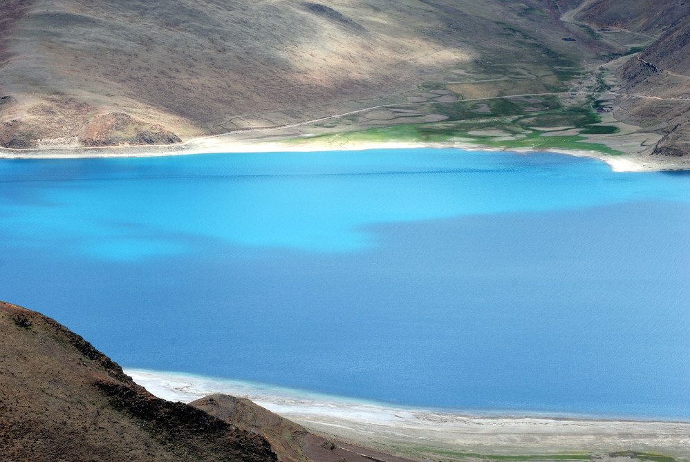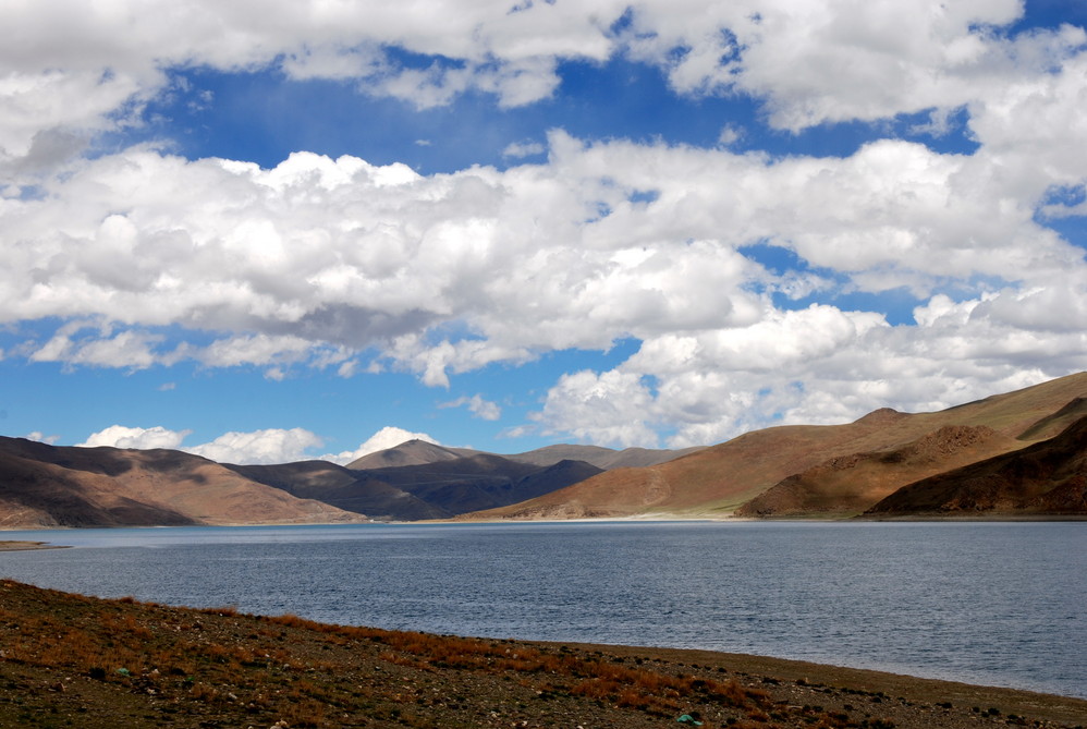 羊卓雍措简介:羊卓雍措,藏语意为“天鹅池”,是西藏 三大圣湖之一,湖面海拔4441米,东西长130千米,南北宽70千米,湖岸线总长250千米,总面积638平方千米,湖水均深20-40米,是喜马拉雅山北麓最大的内陆湖。羊湖岔口较多,像珊瑚枝一样,因此它在藏语中又被称为“上面的珊瑚湖”。湖内分布有10余个小岛,大的可容五六户居住,小的则仅有百余平方米。