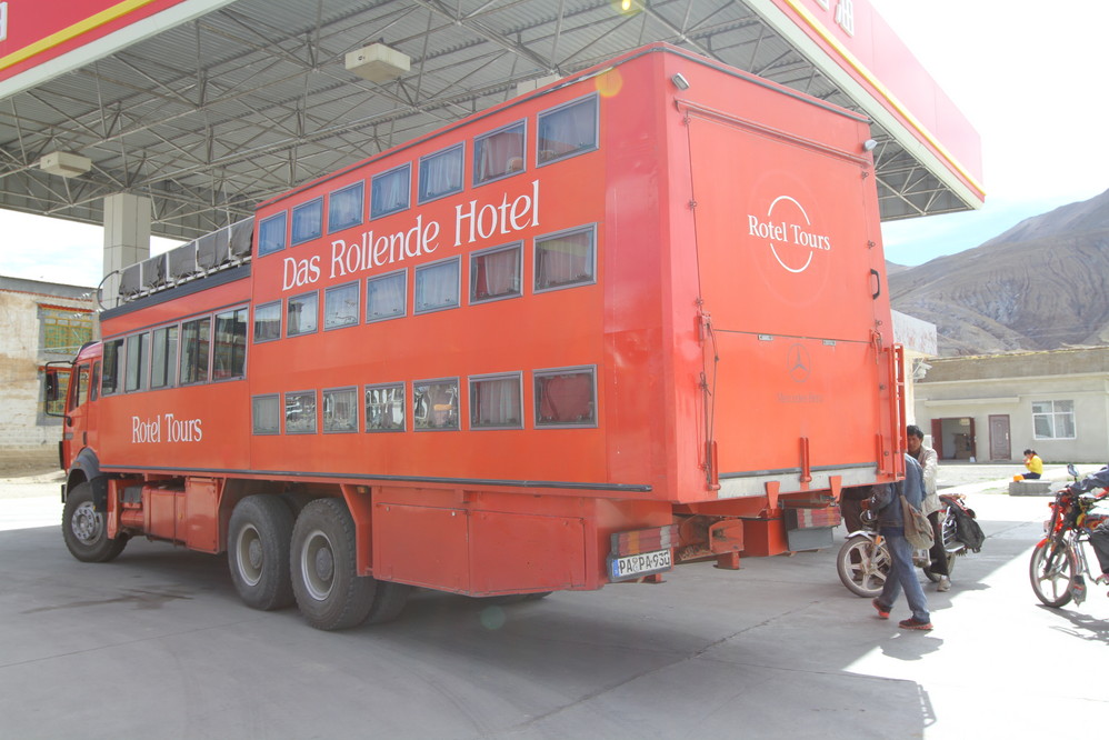 在白坝(新定日 )吃饭,川菜,还可以。bobi他们在加油站见到一部欧洲 开过来的巨型房车,来西藏 旅游,游玩同时不用住酒店,确实方便,但费用厉害!看来西藏 是吸引人,境外人开摩托、开房车、住帐篷、当然住酒店也有,什么方法都保证来西藏 玩,让我们真是开眼界了!