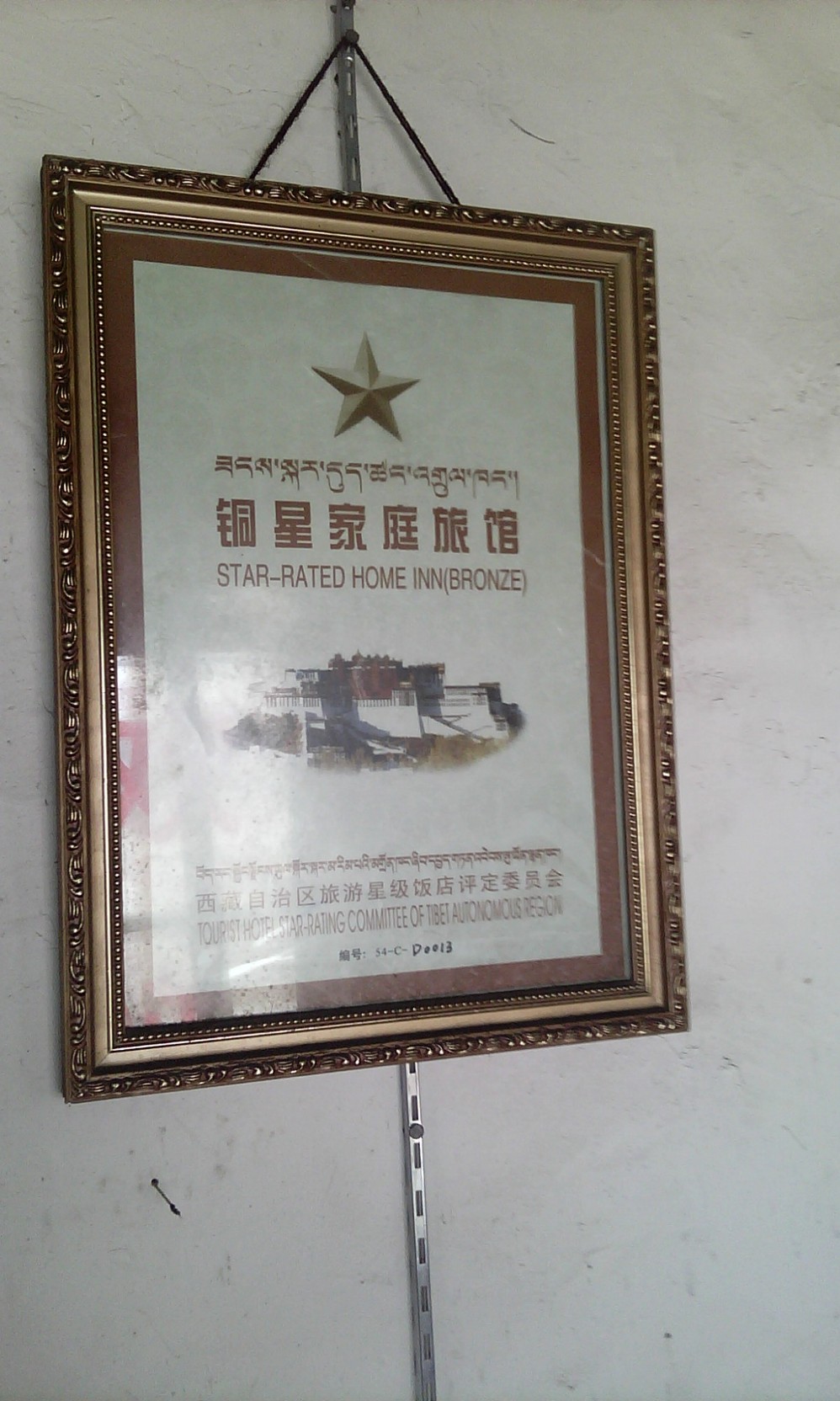 很不容易到申扎了,海拔还是4700!很高兴地到了县城招待所,天!第三个迎接我们的礼物也到了,全县停电!县城招待所一旦停电连热水都没有!不得已,出来看了其他两间招待所,在一间能提供热水的、卫生条件还算可以的招待所住下来,两间四人房,男女各一间。