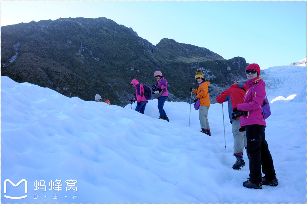 第二天早上乘直升机登上福克斯冰川,亲身在磅礴壮观的冰川上徒步了整整三个小时,人生中也是一个难以遗忘的经历。
