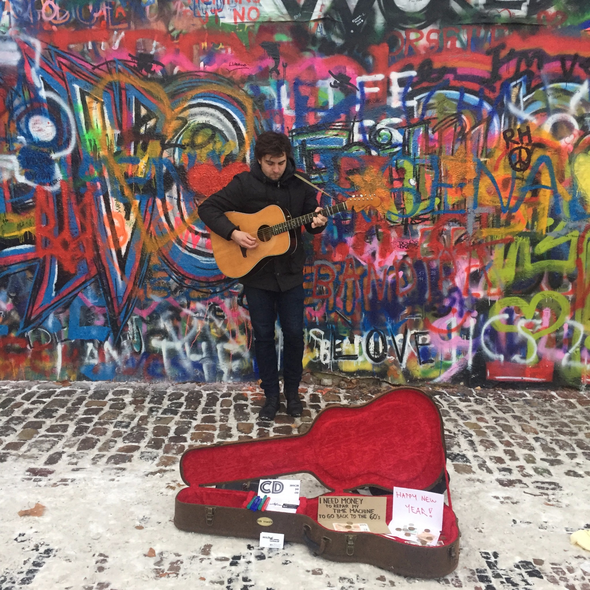 我迷失在小弄堂里,寻着甲壳虫乐队老歌的旋律找到了期待中的列侬墙。这面墙出现在背包客们的镜头下,每一张都不一样,因为反战主义的涂鸦爱好者们日夜涂抹修改,抒发胸臆。