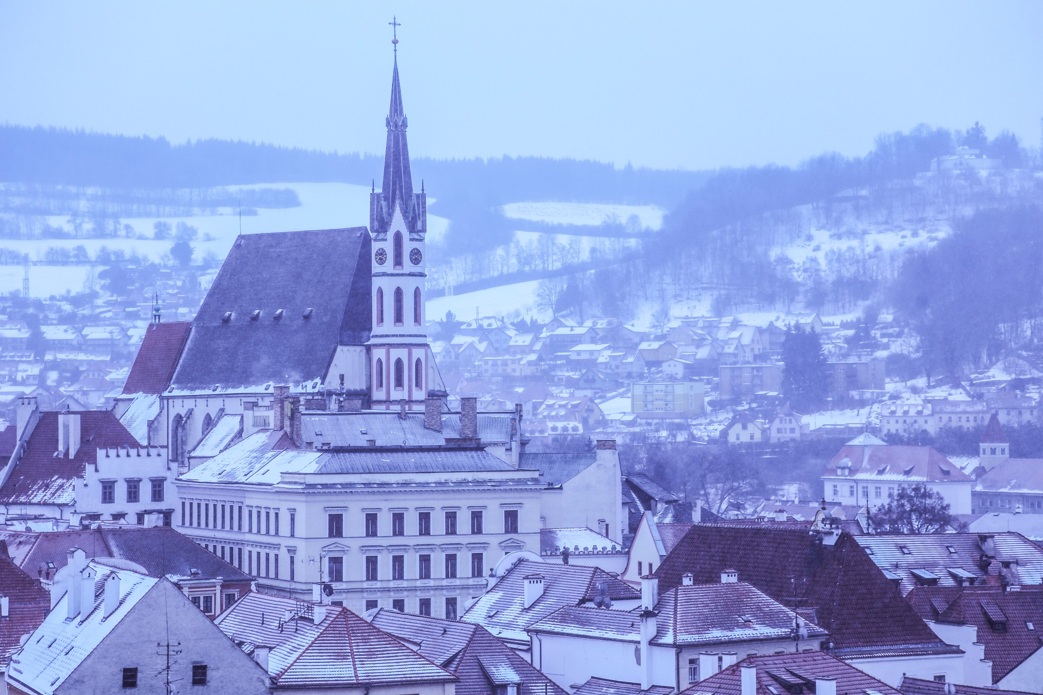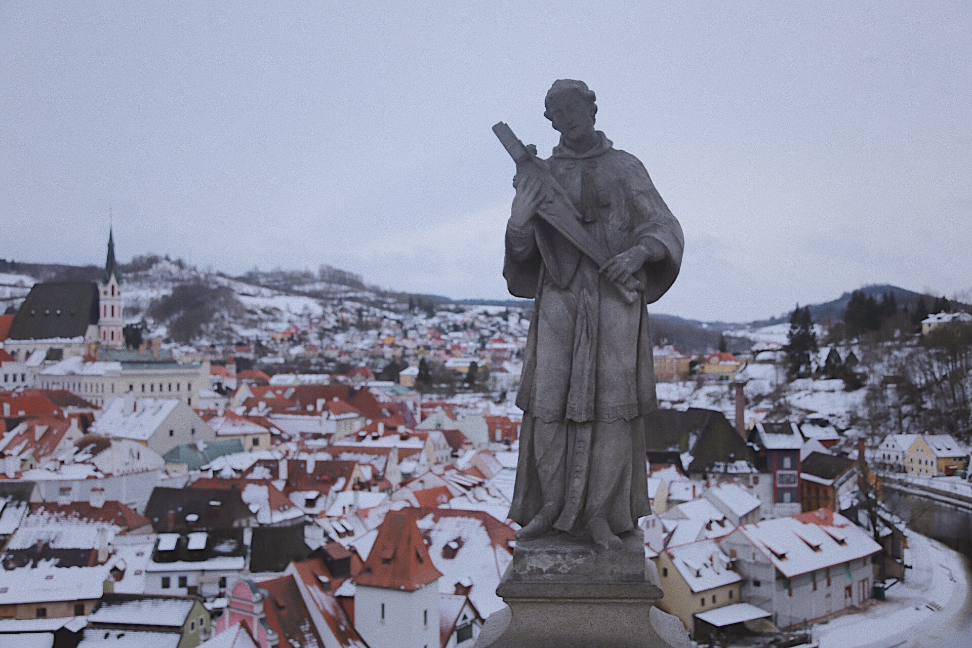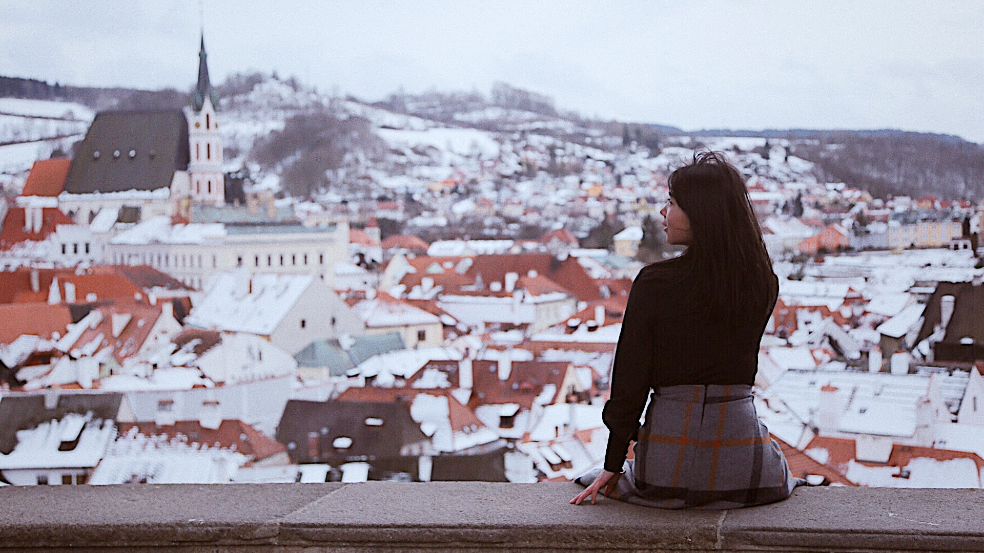 登上塔楼俯瞰老城区,红瓦屋顶已被白雪覆额。风还卷着雪花飞舞,脑补了所有跟雪有关的诗词,都跟眼下这座城不搭边,不知怎么想起苏打绿的小情歌,“就算大雨让整座城市颠倒,我会给你怀抱。”