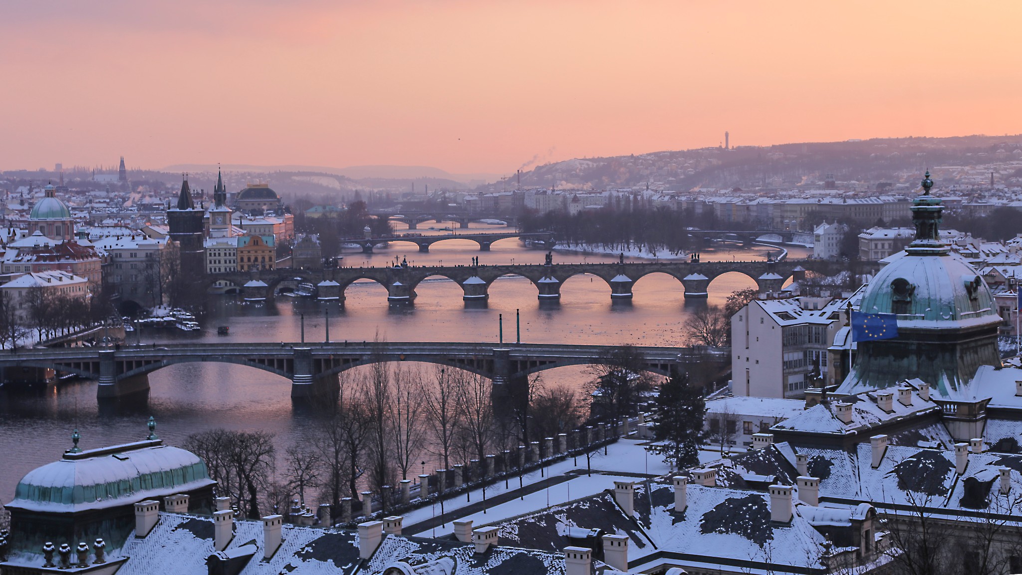 拉尼娜现象裹挟着寒风席卷欧洲大陆,被大雪覆盖的布拉格冷到了呵气如冰的温度。