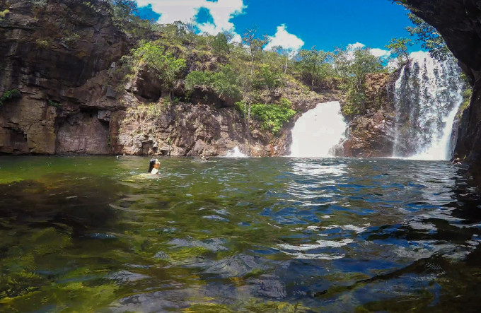 接下来的两天实在太快乐了。一路上,各种瀑布水潭Tolmer Falls,Florence fall, Wangi fall都没有被关闭,我一路开车,开累了就找个瀑布跳进去游个泳, 游累了就跳上来坐在岸上边啃西瓜边听音乐, 有时也会和来游泳的小孩子比跳水, 看谁跳的远。