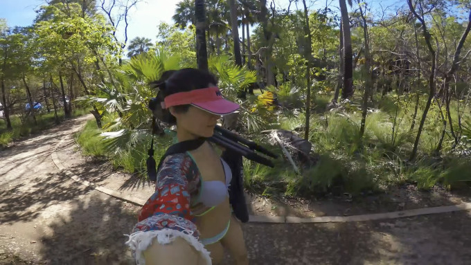 远远的看见水潭边上竖着一个巨大牌子, 走近一看不禁一阵阴风扫过,上面赫然写着:“鳄鱼出没,请勿游泳”。我一惊,赶紧把刚刚踢掉的拖鞋从水潭边捡起来又穿了回来。 环顾四周, 只觉得树林阴森恐怖, 水潭边的草丛中有点风吹草动, 整个人的神经都绷起来了! 刚刚欢快惬意的气氛瞬间变了模样。