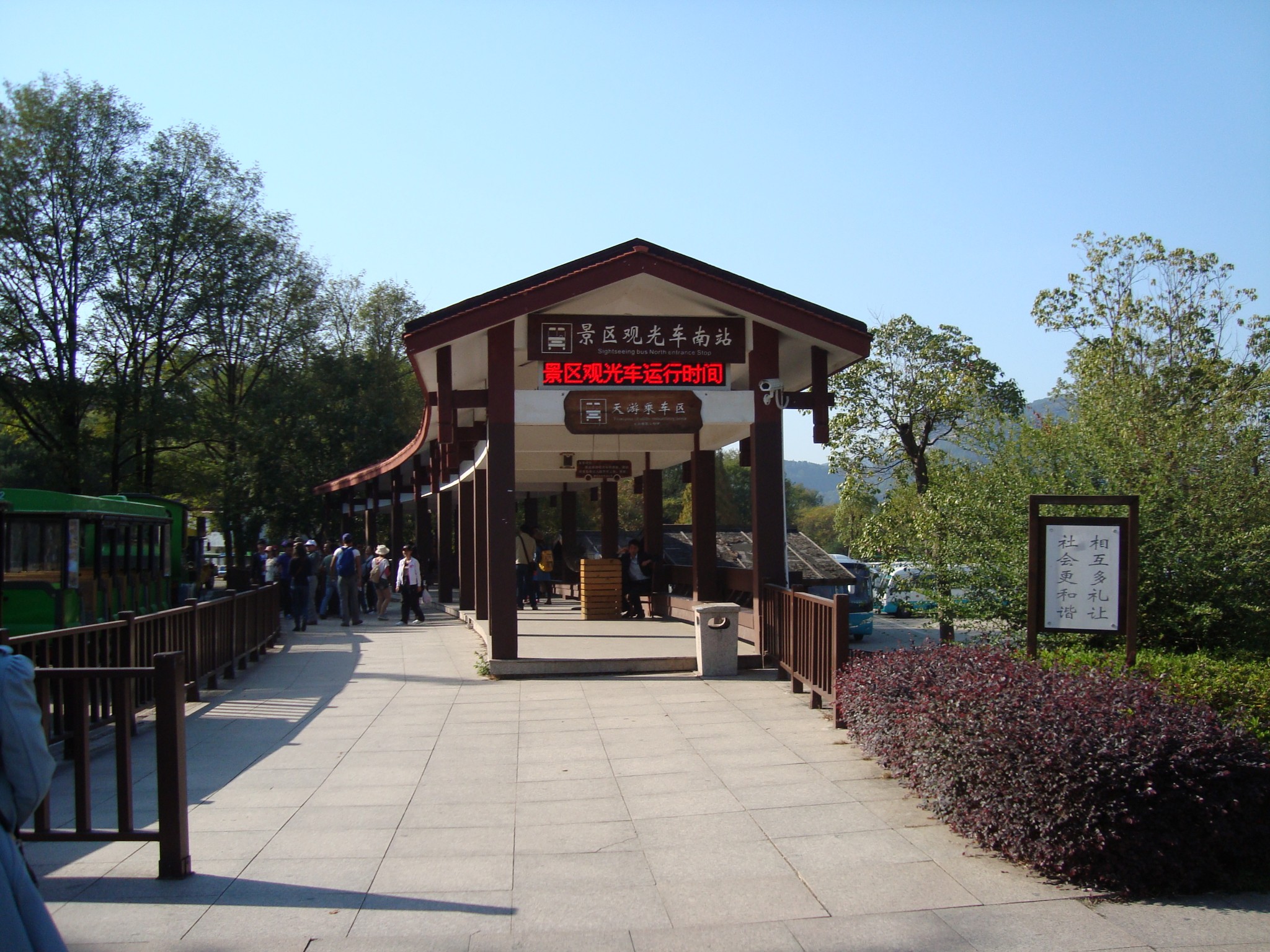因为我们住的地方离景区北门比较近,离南门比较远。所以早上起来吃过早餐后,沿着景区公路步行来到北门(十五分钟左右),这里有观光车调度室,告诉调度员我们要去虎啸岩,他安排景区观光车送我们前往虎啸岩。上图:
