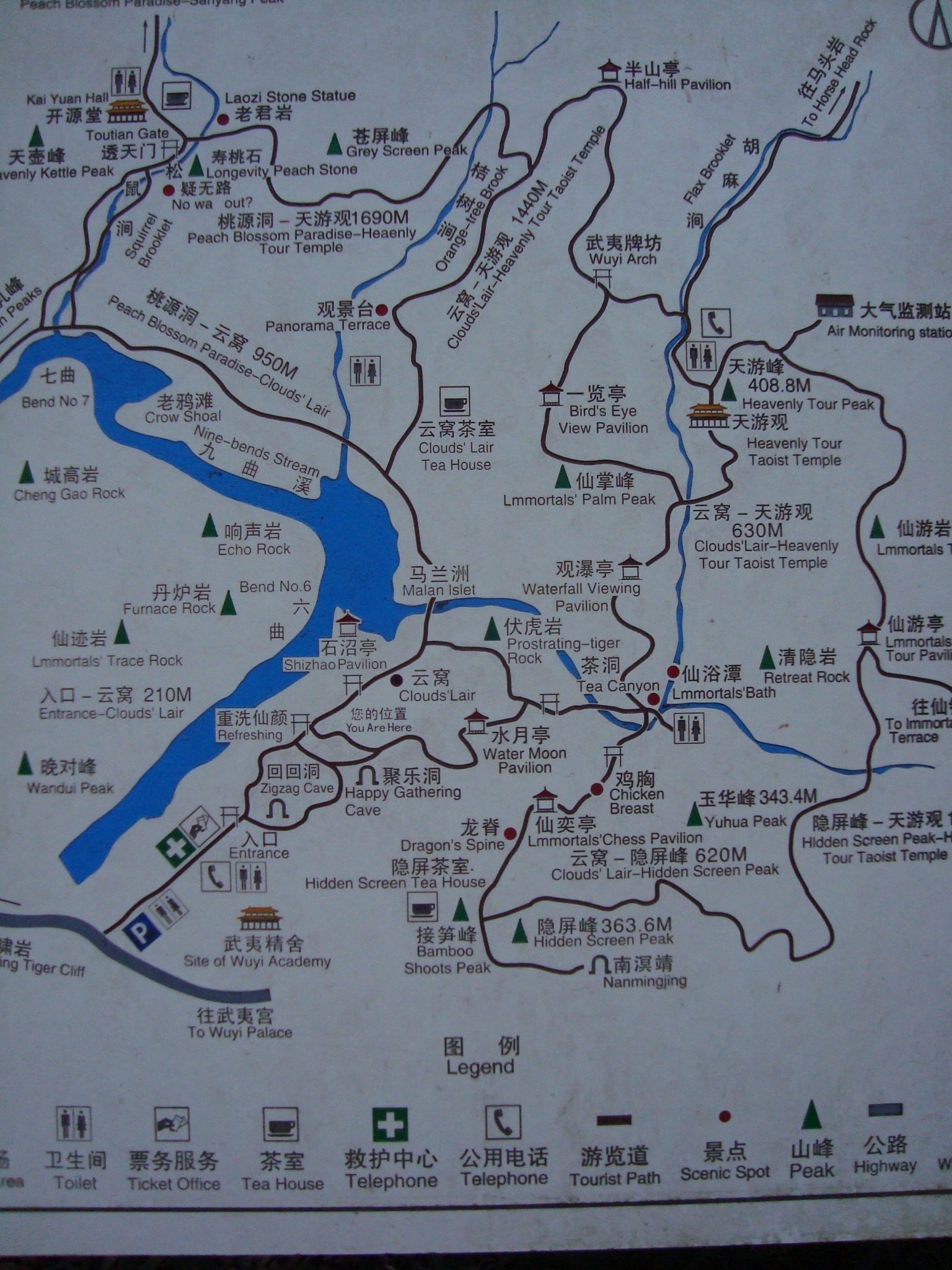 14:30左右到酒店放下行礼,前往武夷山景区南门取票。因为我们订的是三日联票(含观光车),所以当日就入园了。在景区售票处取了票,坐观光车前往天游峰,上图: