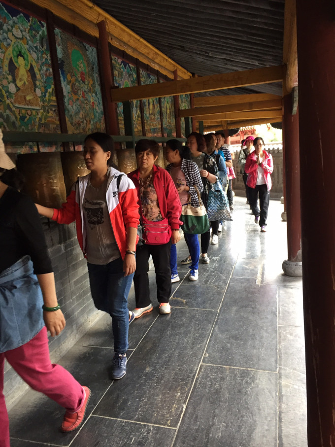 我走在二哥后面,前面还有本团的许多人,最年轻的58岁的“骆驼肉”上了后面的高塔转经,我们也连忙上去,跟在后面转动祈福的经筒。
