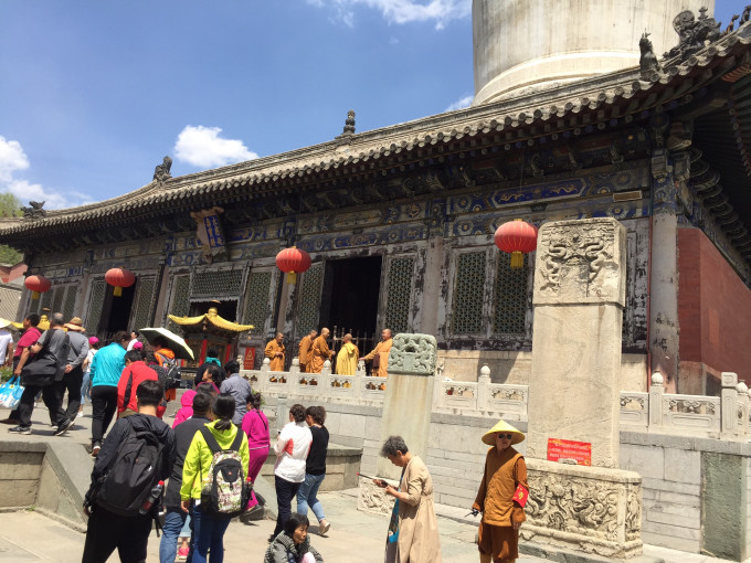 第二天一早,大巴车送我们一行去菩萨顶,路过一座寺庙,导游说,这间寺庙,便是当年李娜出家的地方,曾经闹得天下沸沸扬扬的,如今这么多年过去了,李娜可在?