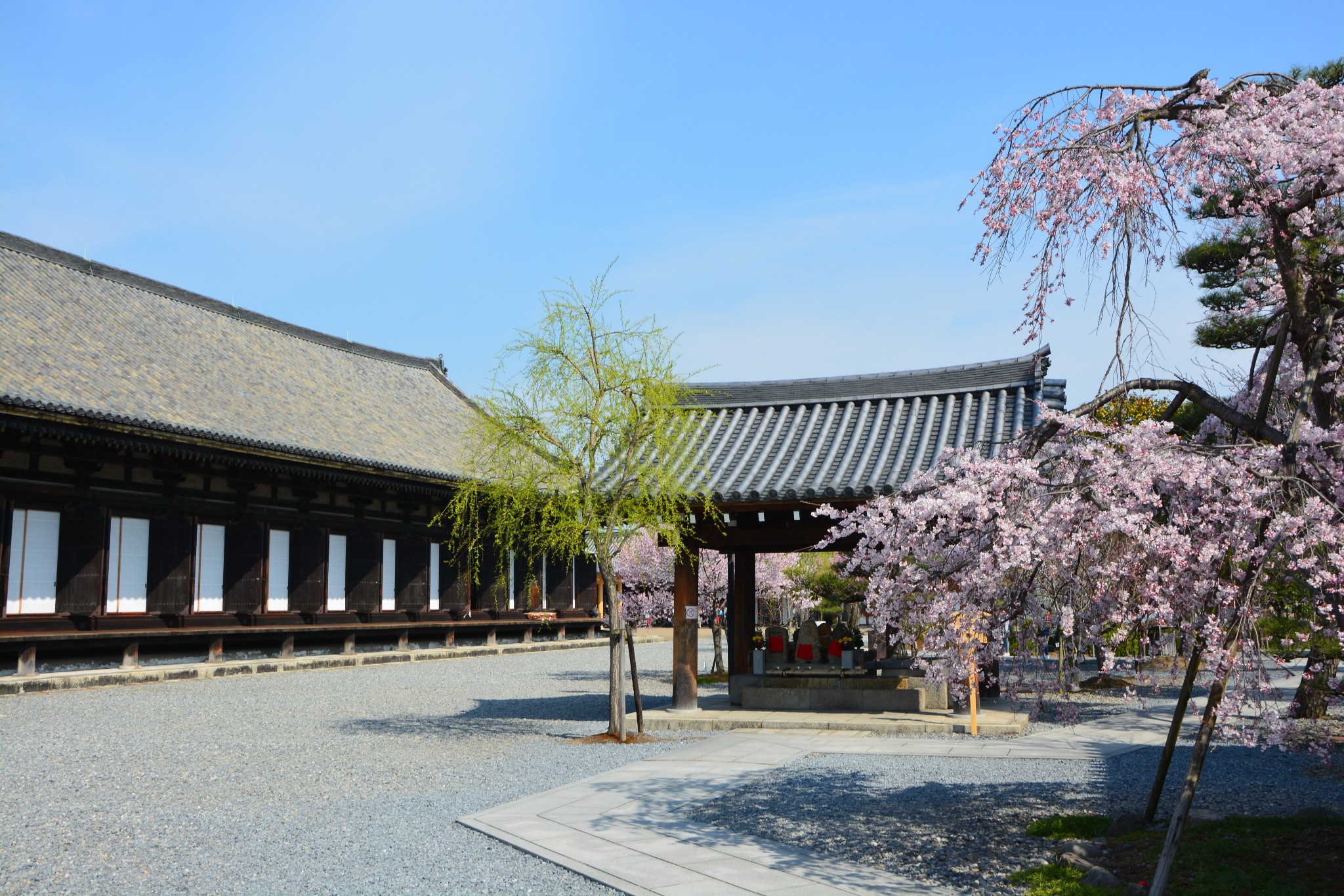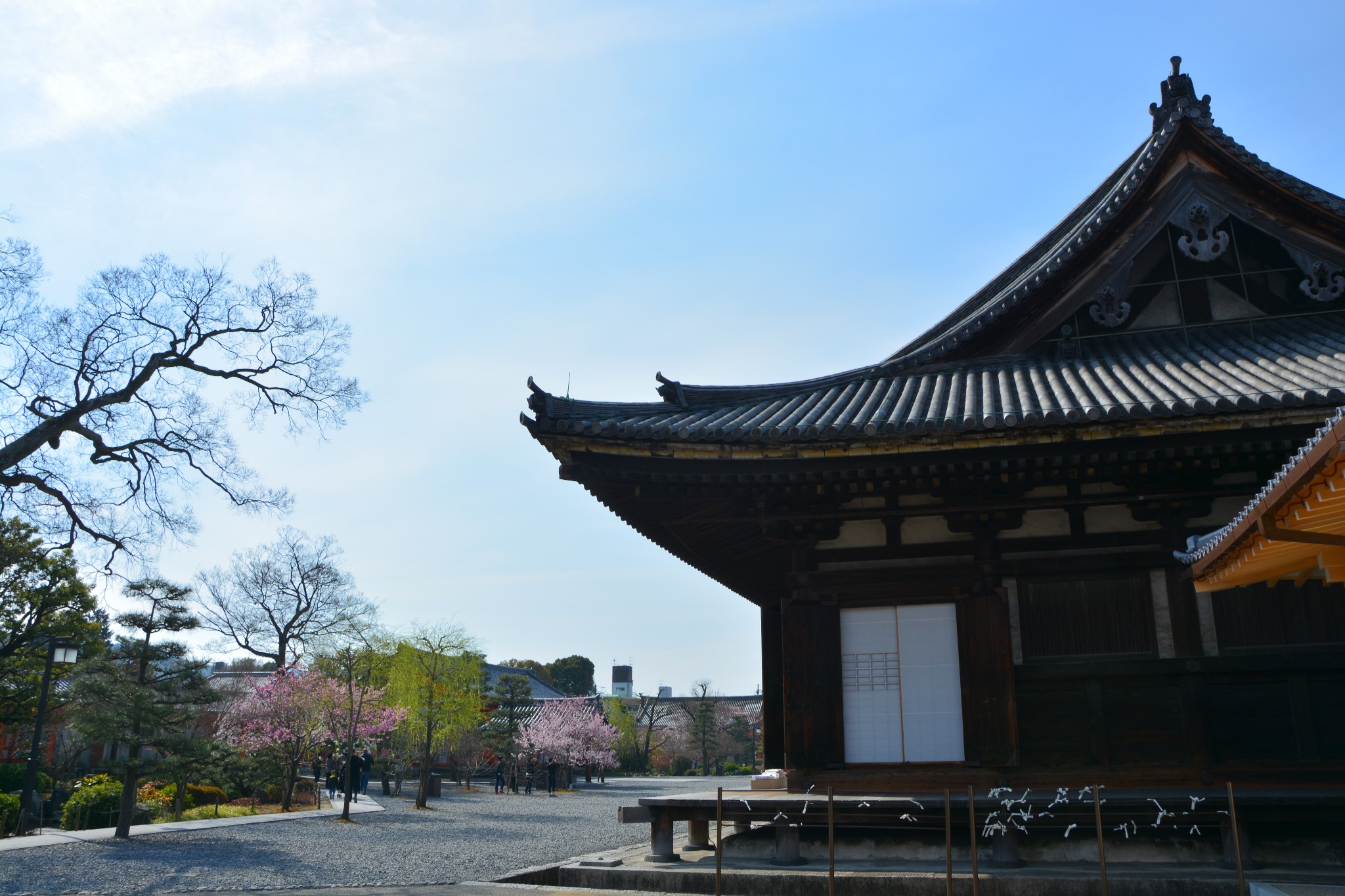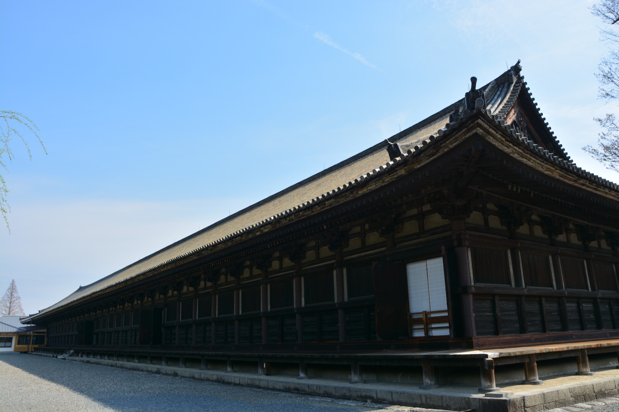 阳光明媚的早上,从所住的旅馆出发,迈着轻快的步伐,穿小巷过大街,跨过缓缓流淌的鸭川,便是京都古迹集中的一大片区域,各种年代久远的老宅、寺院和神社比比皆是,让人应接不暇,而三十三间堂更是其中最珍贵的宝藏之一。