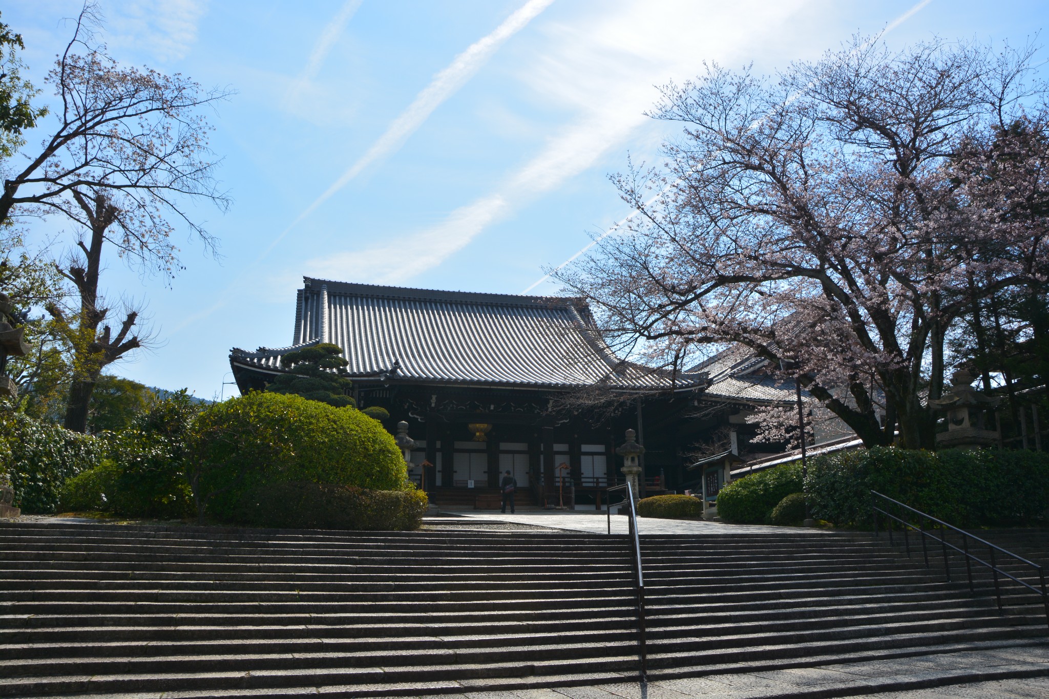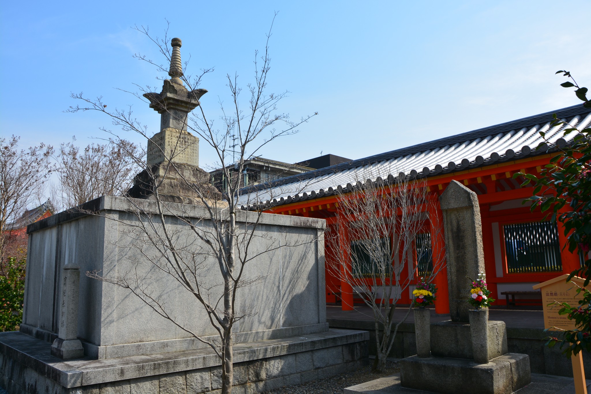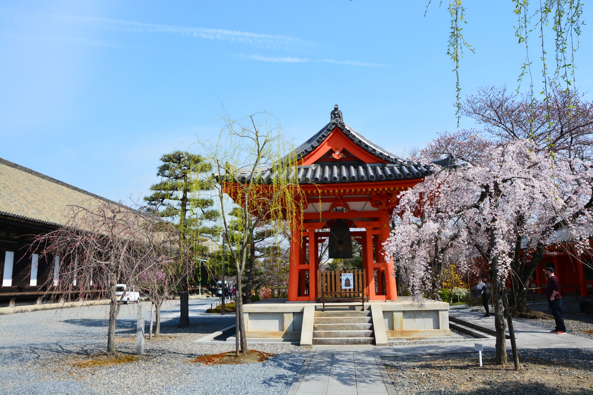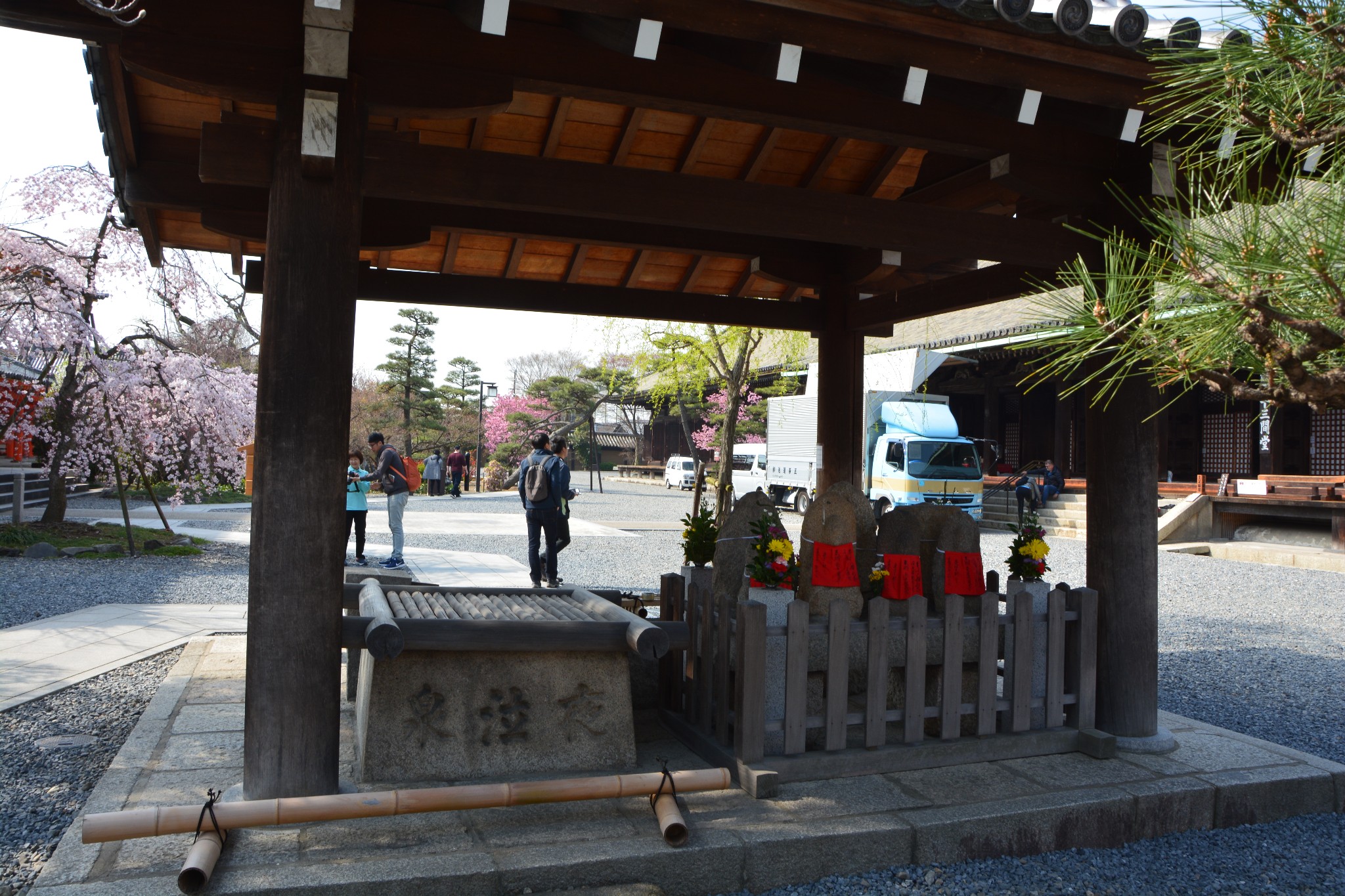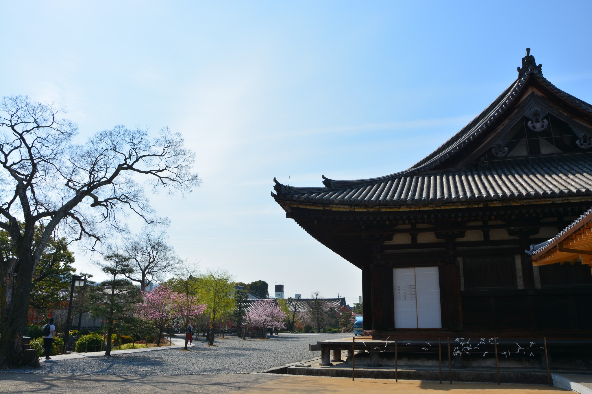 从三十三间堂走去清水寺,不过两、三公里的脚程,穿过几条幽静古朴的小街,便是一路上坡,路边都是本地百姓的墓园,依山而建,绿树衬托,墓碑错落,走在其间,并没有国内陵园那种阴森森的烟火气息,反而有一种浓厚的世俗气息,似乎这里只是人生终点的长眠场所,既不恐怖,也不哀伤,大家终究都要来到这里。而且,京都的樱花来得正好,路上偶遇几间小小的寺院,原本就狭窄的庭院几乎要被怒放的樱花填满,花团锦簇,令人流连。