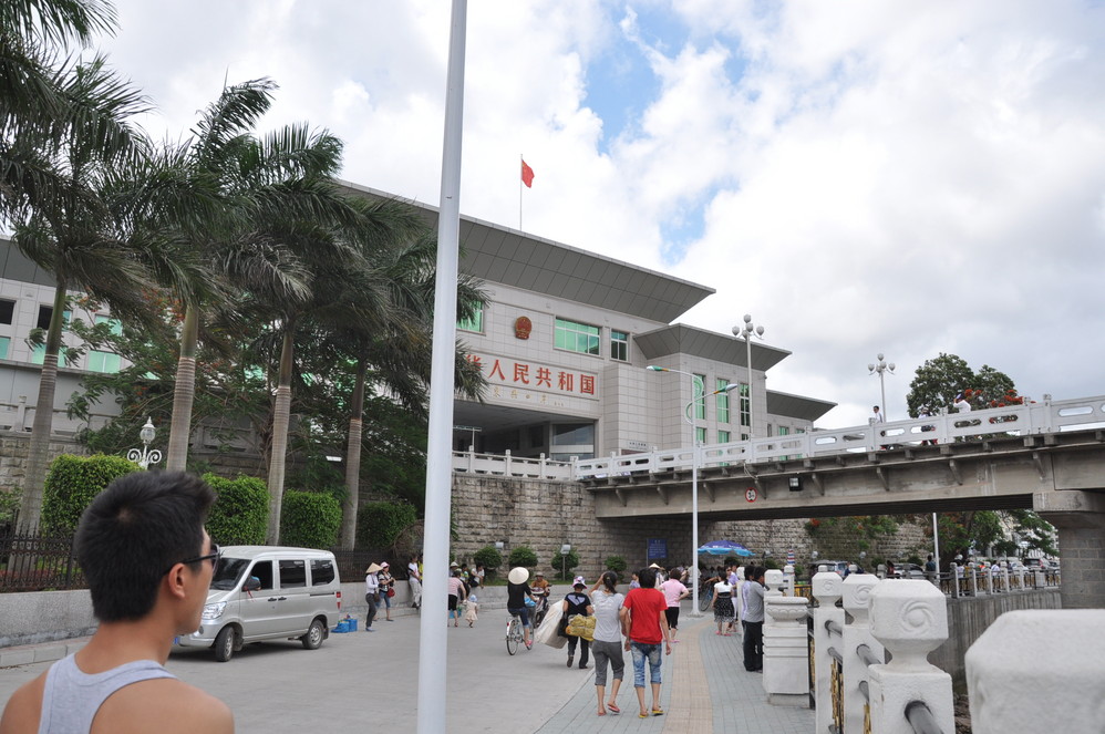 15:30 东兴 口岸出境。东兴 口岸正在修房子,但是还没竣工,得从东兴 口岸右边(面朝东兴 口岸)一直往前走,过桥底,你就看到出境通道 了。出境大厅需花10元购买一张明信片才让进。不知道这是谁家规定的,物价局是否知情?东兴 口岸查护照的官员很友善,会提醒你很多注意事项。过海关时,我主动申报ipad2和单反相机,海关官员说不需要,入境时不会有麻烦。