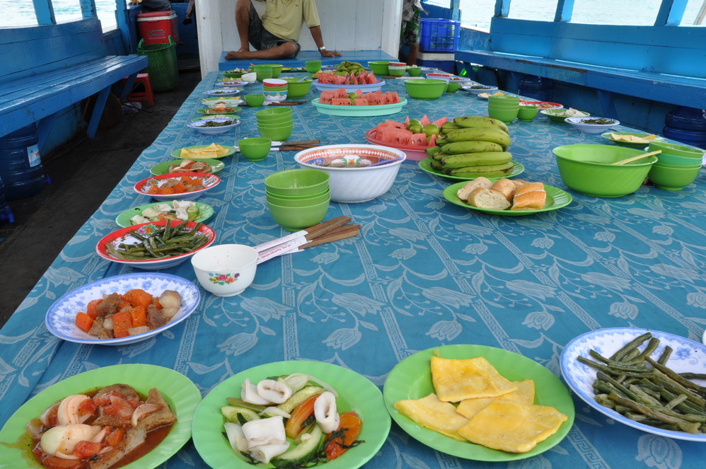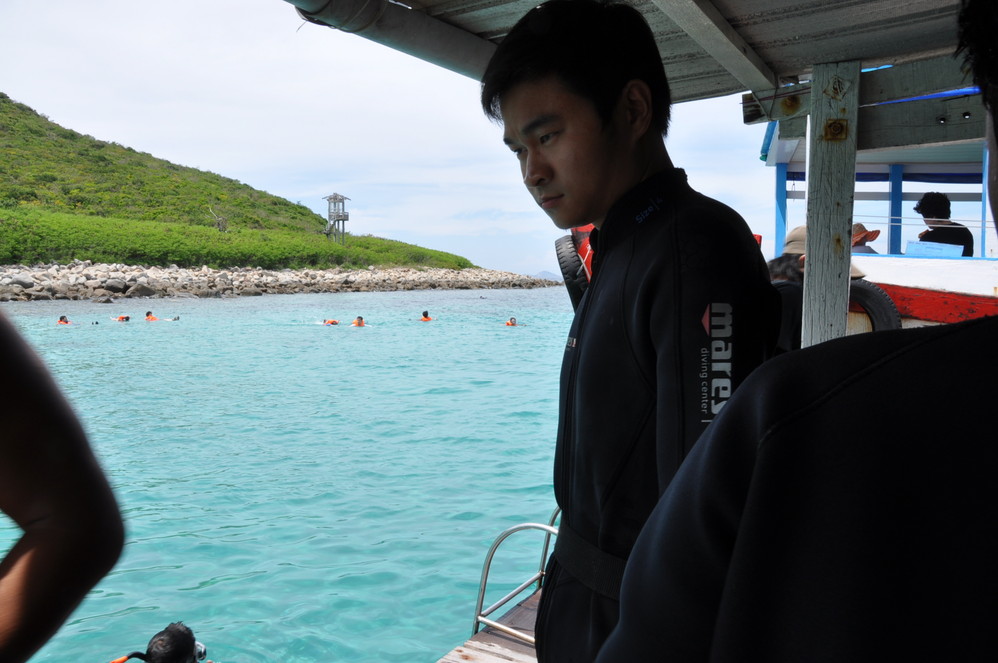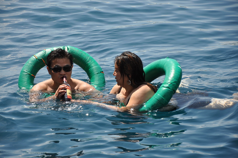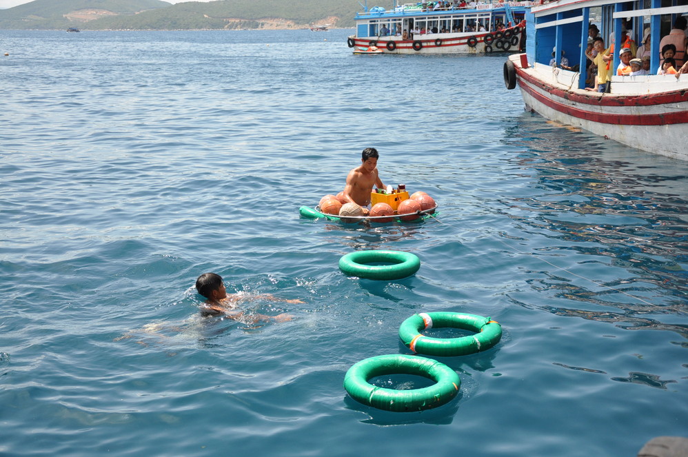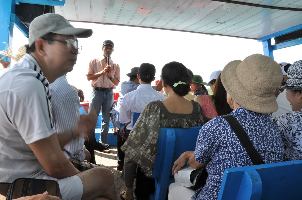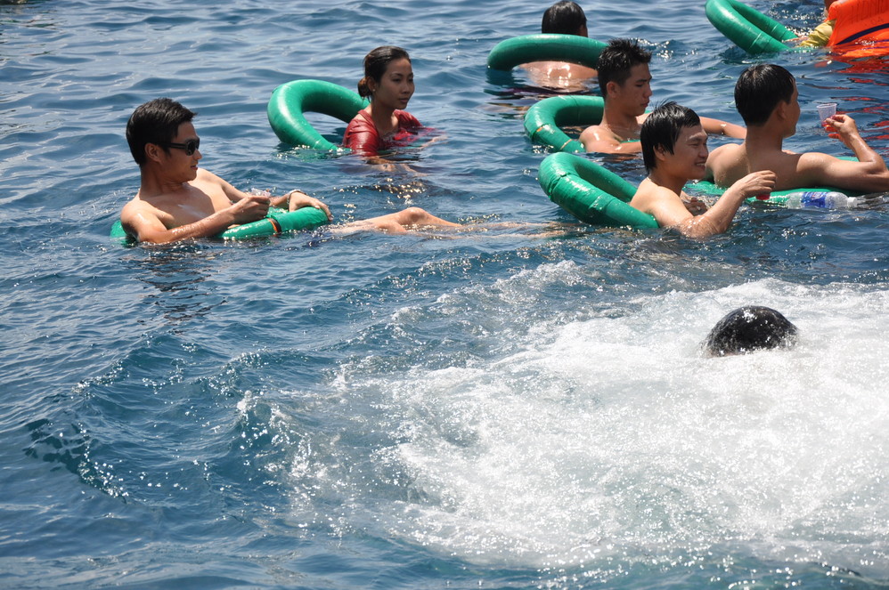 游船内。除了我全部是越南 人。物以类聚,所以我一个人坐了四个人的座位。