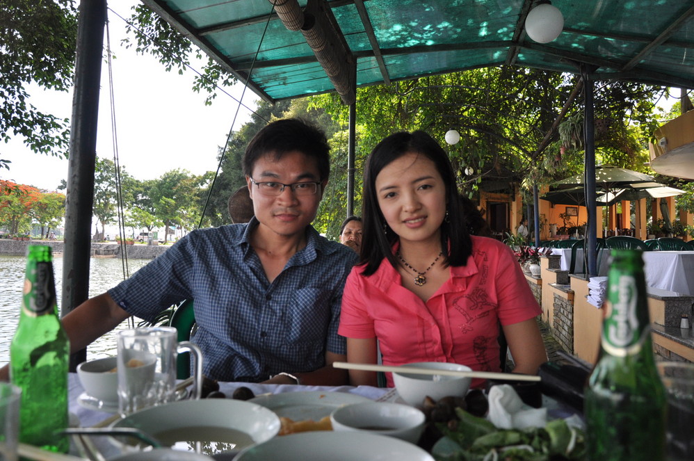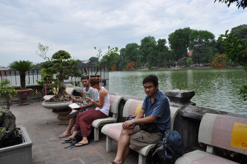 河内 ,西子湖畔 。一个不懂越南 语的中国 男子和一个不懂汉语的越南 女子。