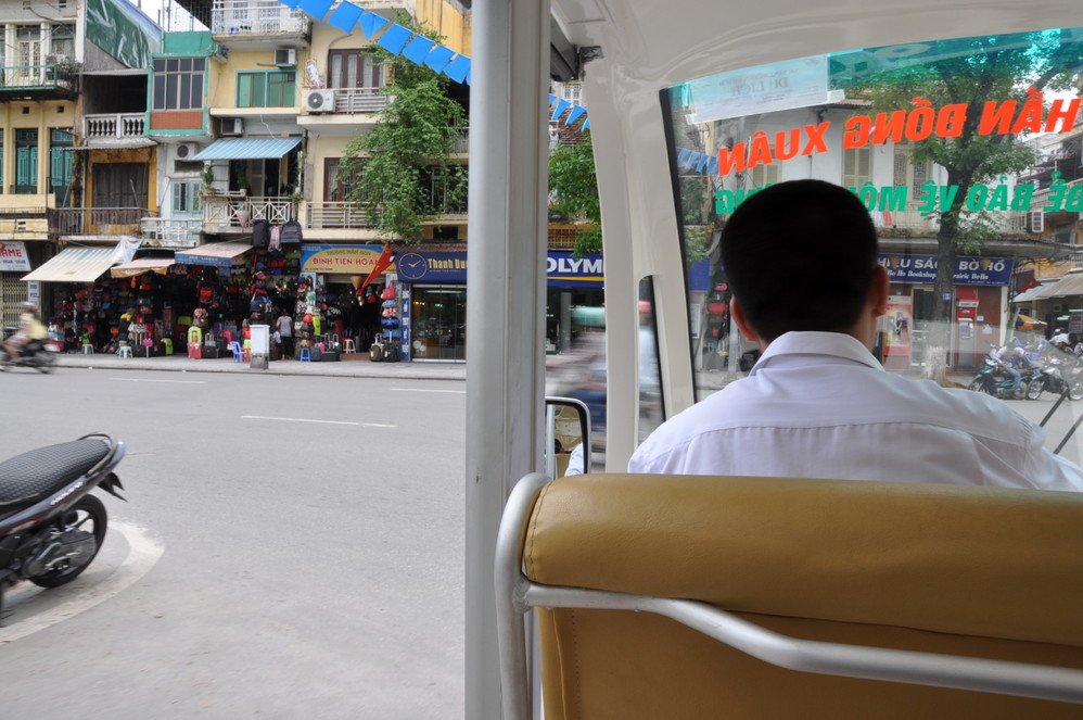 14:00 游完下龙湾 ,在游船售票处坐摩的去拜寨汽车站,开价50000,明知被宰,但是语言不通又着急去河内 ,成交。这是来越南 后第一次被宰。为什么下龙很少看到的士呢?在拜寨车站(地图在上面)门口,有很多去河内 的中巴和大巴,你要问好他们是去哪个车站,并事先在纸上确定好价格,不然被宰没商量。我当时就是上车后才问价,报价200000,比本地人高了一倍。车上还是只有我一个境外人。