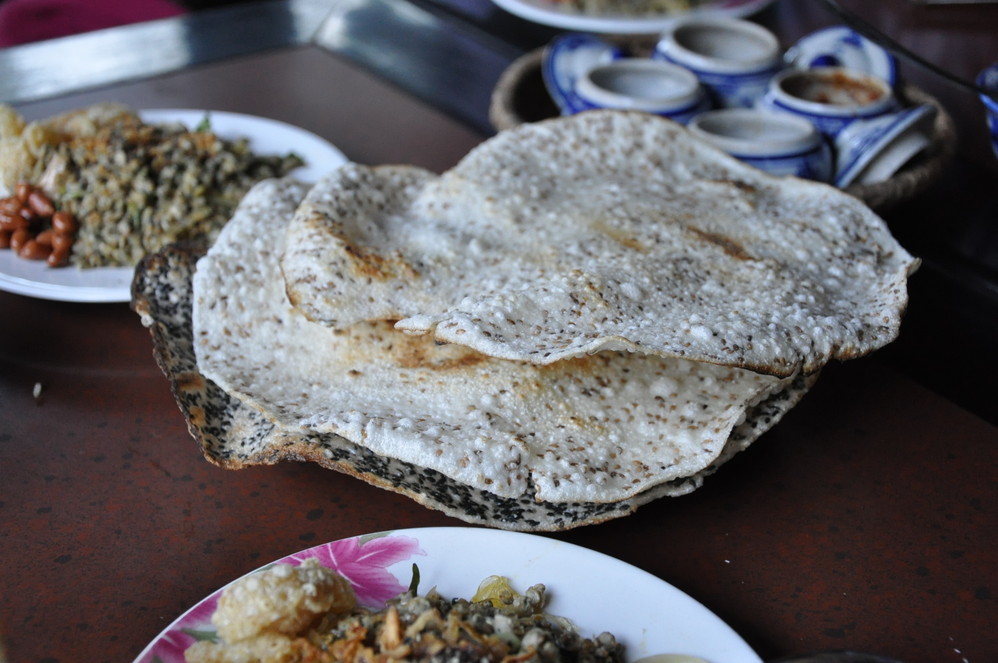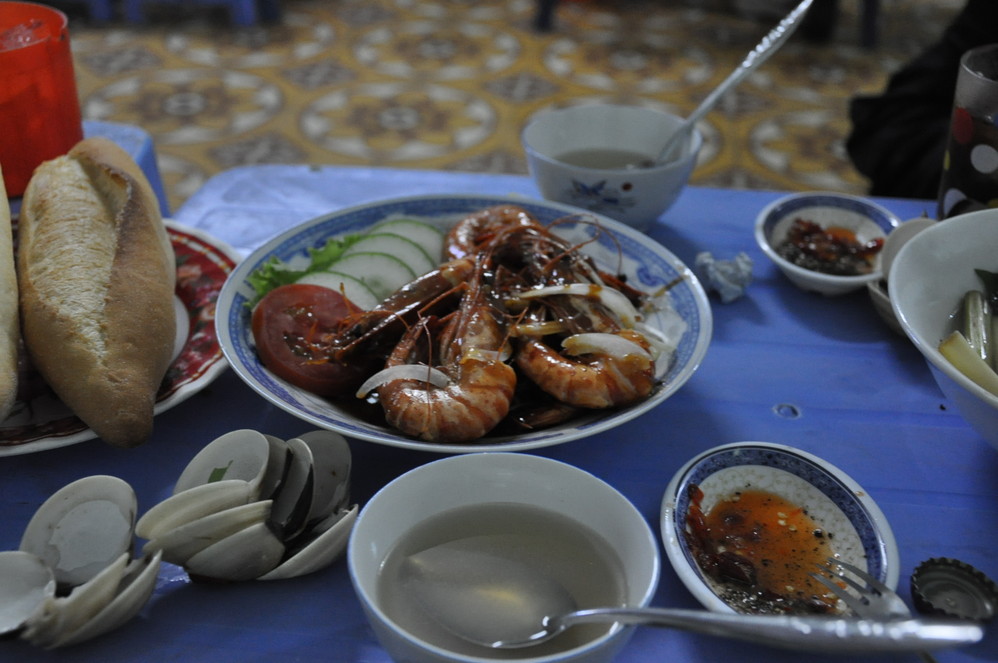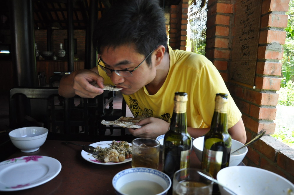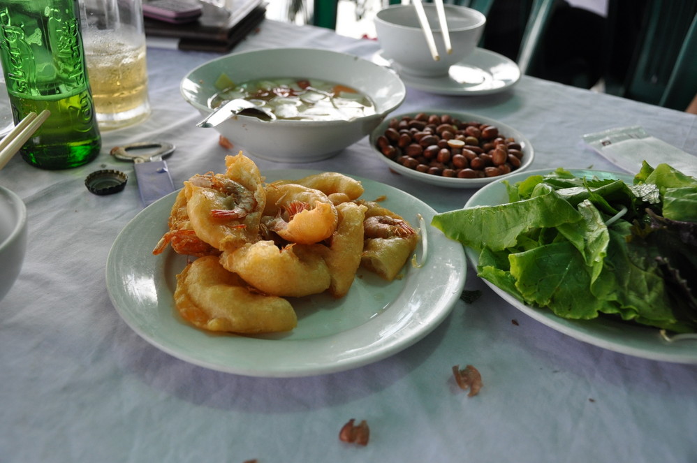 河内 的虾饼,据说与春卷媲美。我看不怎么样。右边的青菜是用来生吃的,这是越南 人的习惯。