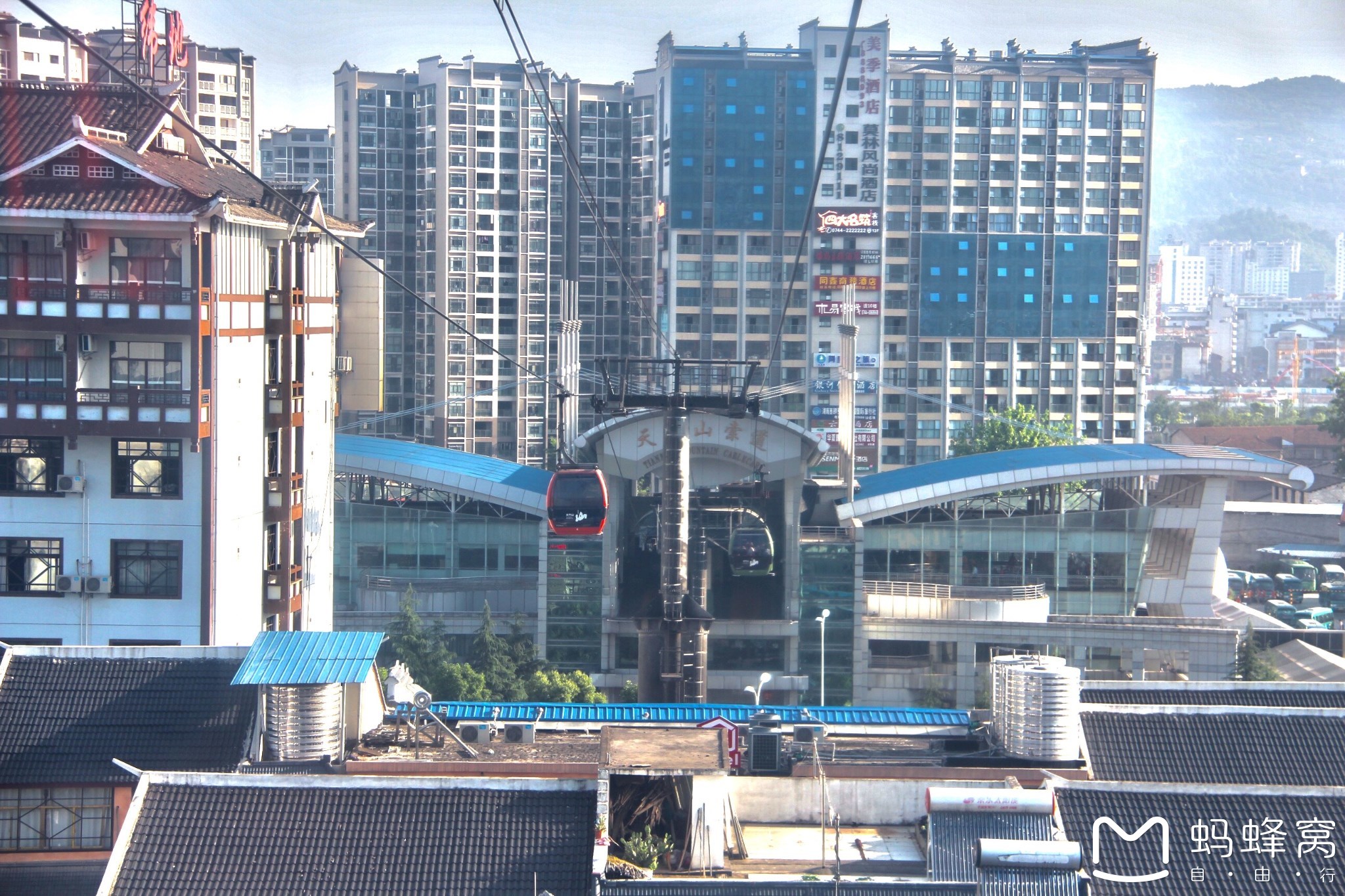 从天门洞下来之后就可以到达坐汽车的地方了,要经过一次换乘就到达门口,我们下山的时候大概十二点。时间比计划的早很多,就直接坐车去往森林公园大门入住.并且晚上去森林公园玩了玩.