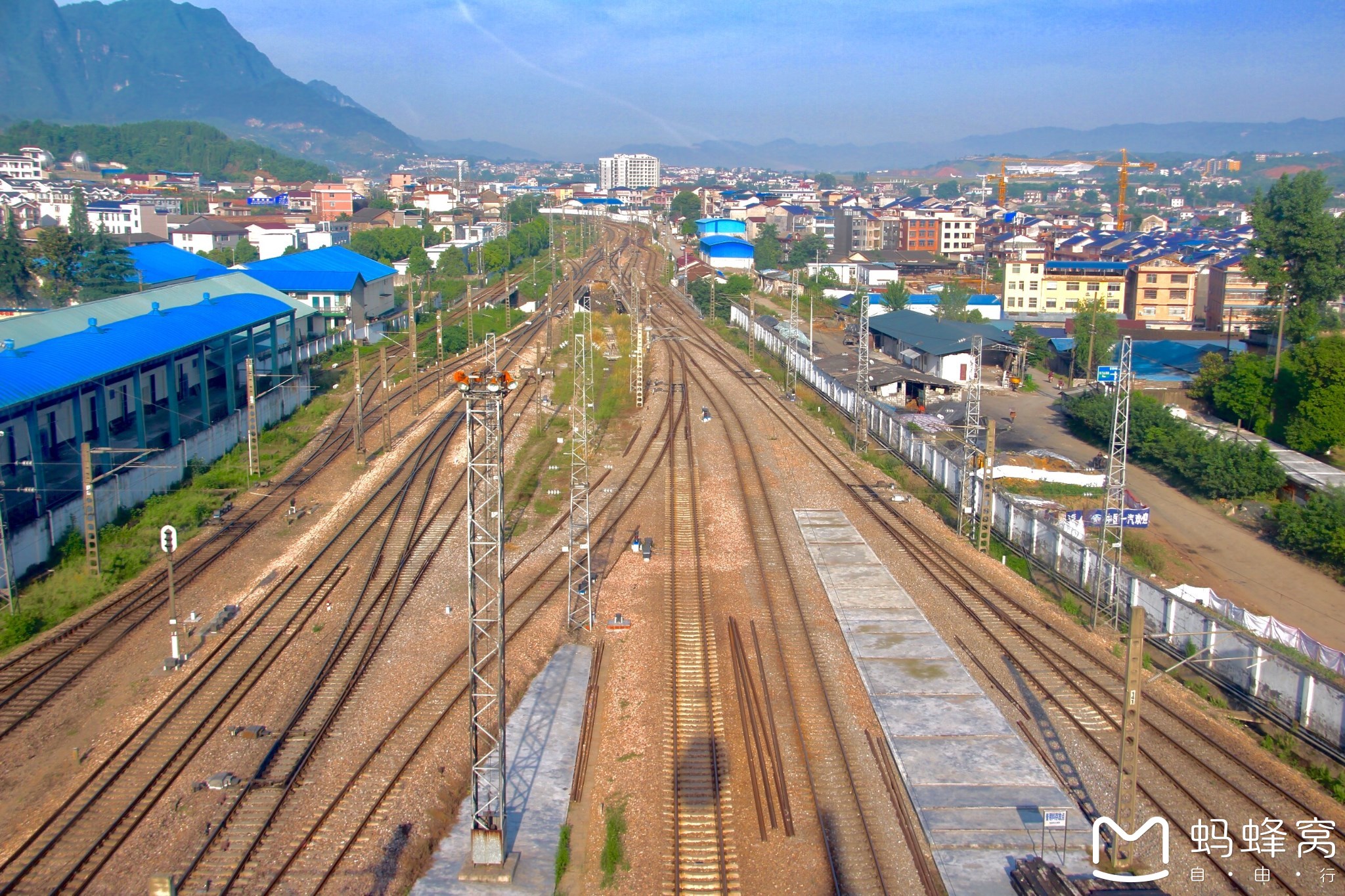 从缆车上可以看见火车道