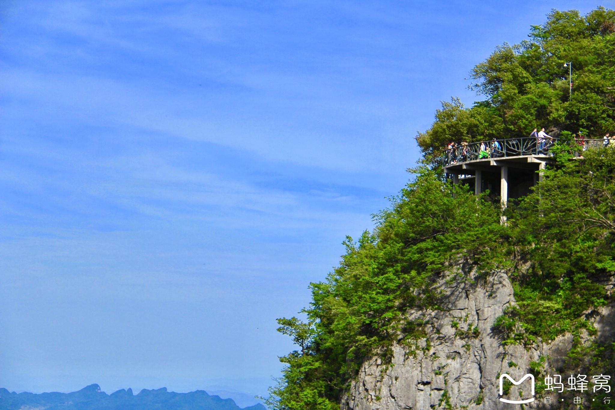 从缆车处可以去天门山的最高处云梦仙顶。云梦仙顶可以看到天门山的全景。曲天大道景色尽显眼底,通天大道总共十多公里,却有99处惊险急弯。