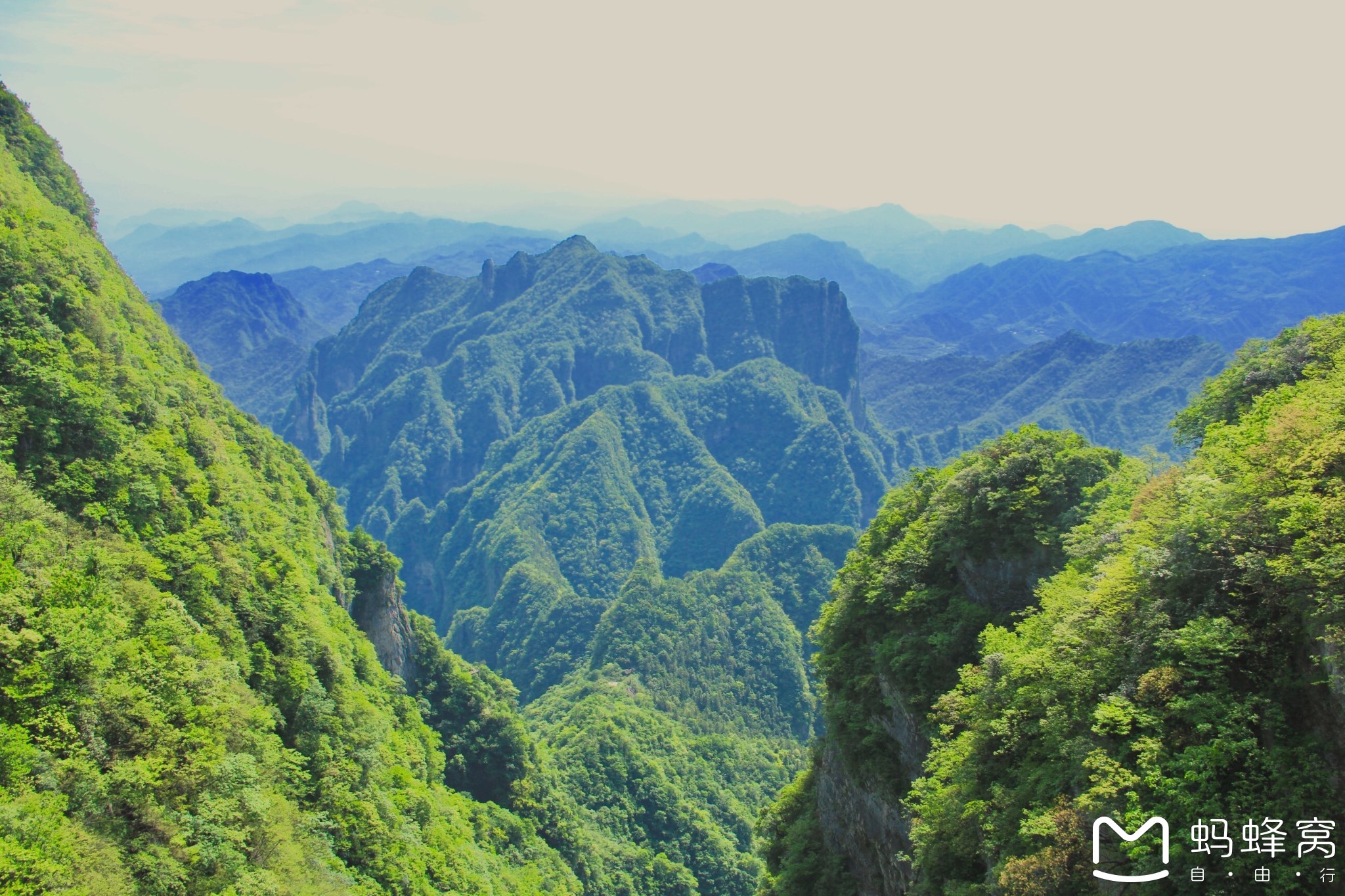 走出玻璃栈道之后的一段路都称作鬼谷栈道,鬼谷栈道全线既不在悬崖之巅,也不在悬崖之侧,而是全线都立于万丈悬崖的中间,给人以与悬崖共起伏同屈伸的感觉。