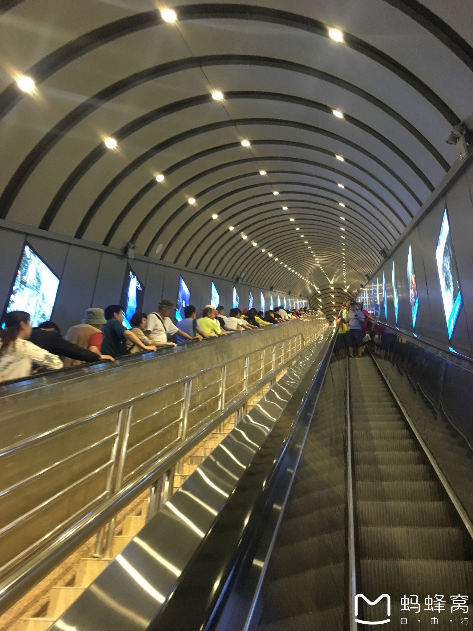 从仙顶下来之后就回到了最开始缆车的位置,就可以从东线到达天门洞。要做穿山自动扶梯,总共12个。