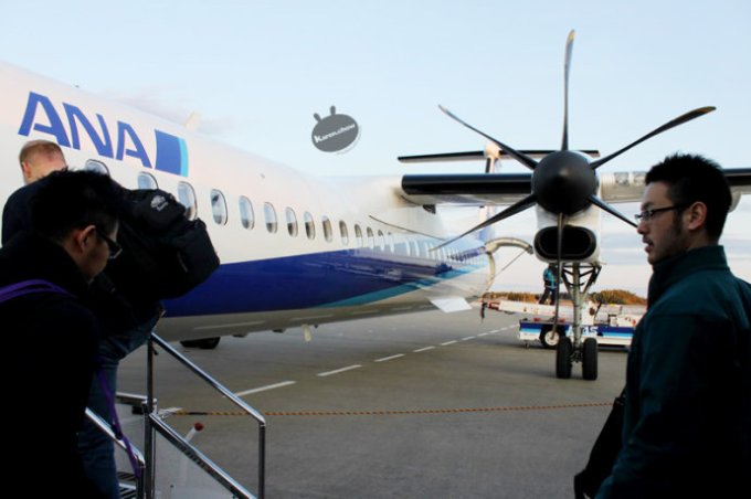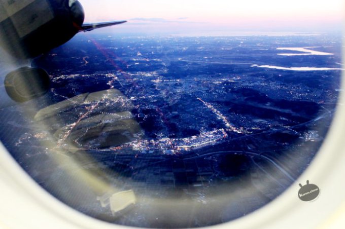 这是日本的国内航班,小飞机灰常有特色!好大的赤裸状螺旋桨,怎么看怎么古老(整个飞行过程都是在低空),而整个飞行过程就犹如坐在轰炸机里,耳膜受罪啊!而且飞机提供的饮品很少,大多需要付钱,座位则在70人左右,有多mini?大家可以充分的发挥想象力……想想有啥好的?——空姐比上午的好看!哈哈哈!