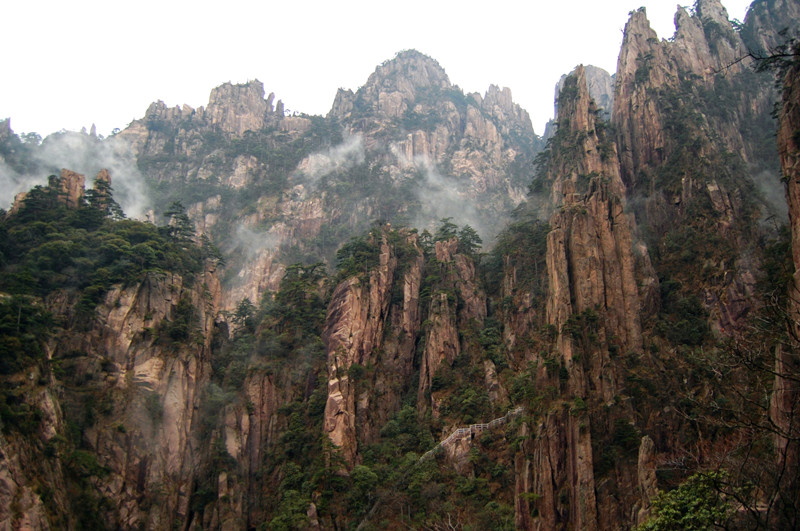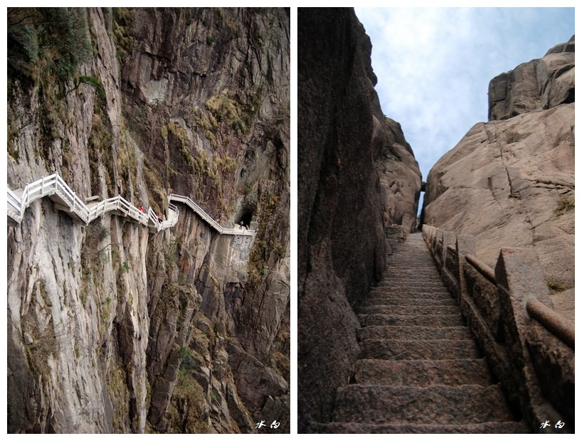 D2:狮子峰(可看日出)—排云亭—西海峡谷(一环/二环/谷底/步仙桥)—白云宾馆—鳌鱼峰— 一线天—百步云梯—玉屏楼—迎客松—天都峰(未上)—半山寺—慈光阁(下山)(玉屏楼那里可以坐玉屏索道直接到慈光阁)