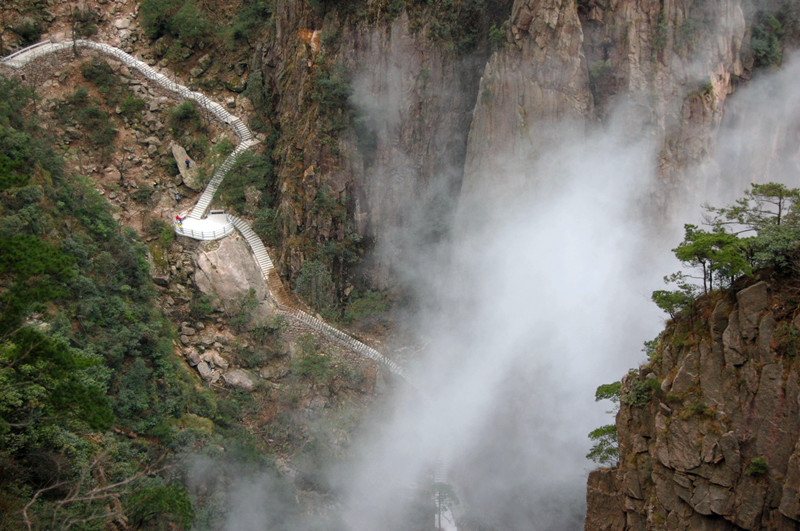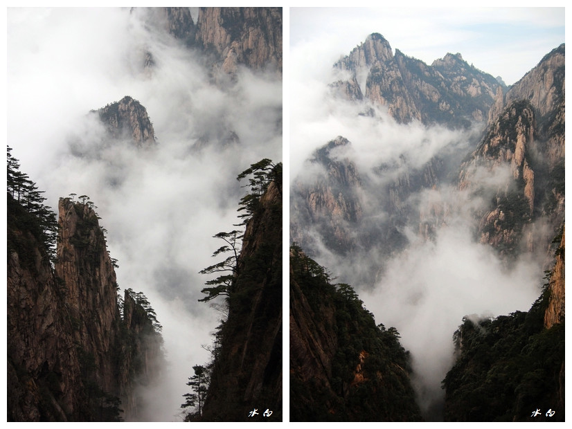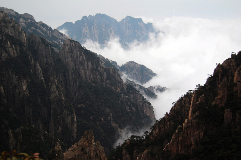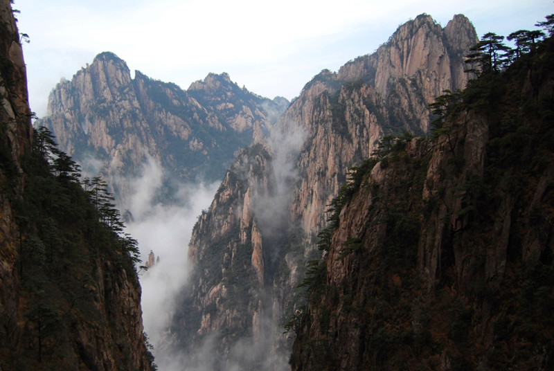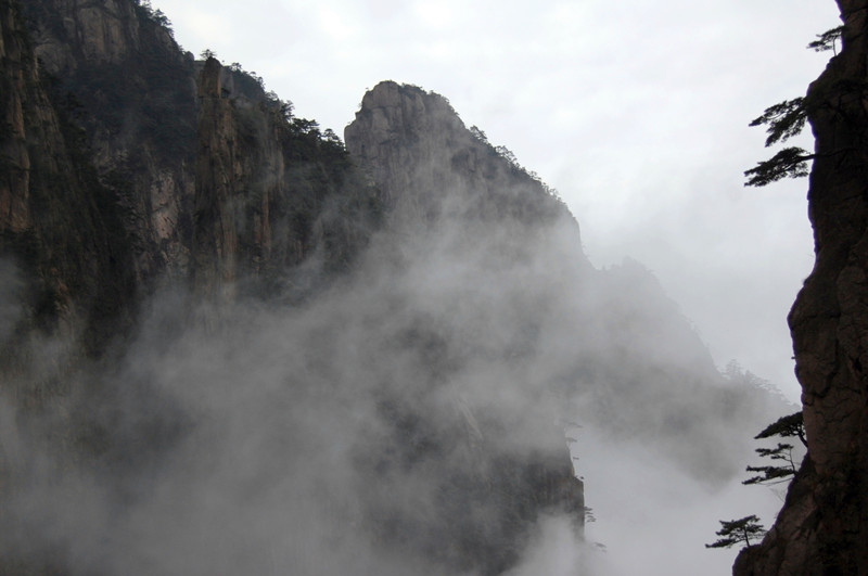 大峡谷是黄山的精华,被称为梦幻大峡谷,真的如梦似幻,险峻奇秀,层峦叠嶂,云蒸霞蔚。瞬息万变这个词一定是为黄山的雾量身定制的。一秒前还只是半阴着天,一秒后突然浓雾串起,一片白茫茫,愣一下的功夫又再次眼前一亮,你还来不及去反映,几个变幻已经过去。大自然的神奇莫测淋漓尽致的上演,一次次惊叹一次次心潮澎湃!