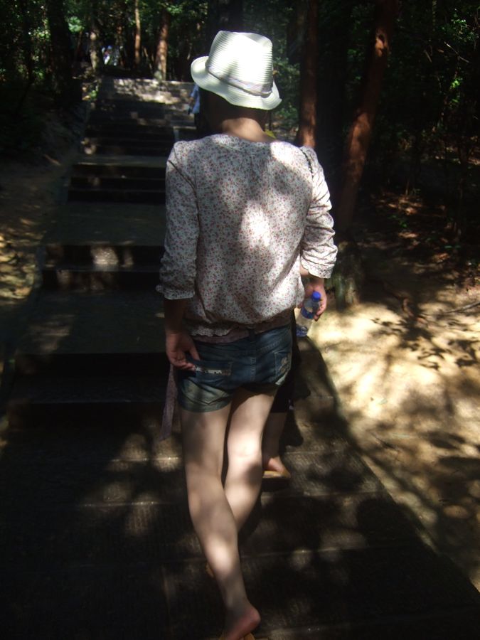 穿着饭店的拖鞋出来的,拍照实在不雅观,刚催打赤脚。
