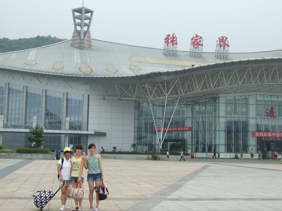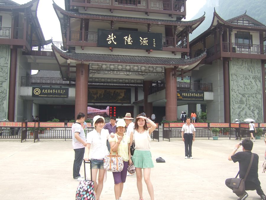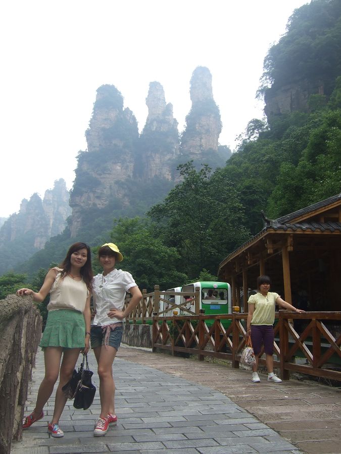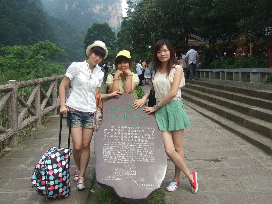 因为打算第一天住景区,于是就这么拖着我们的行李进武陵源 了,哈哈。