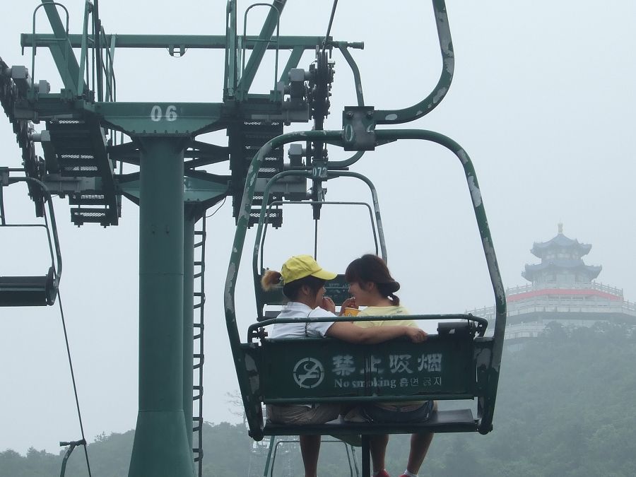 坐缆车上来的时候遇到一对情侣,就一起同行
