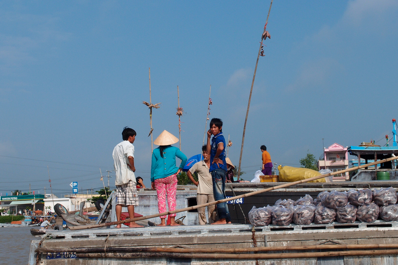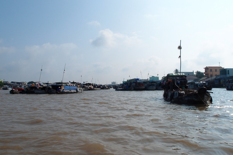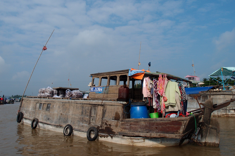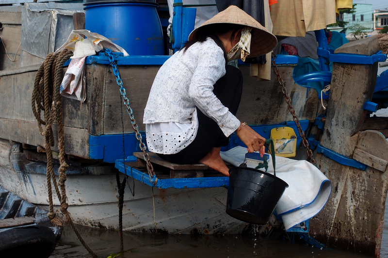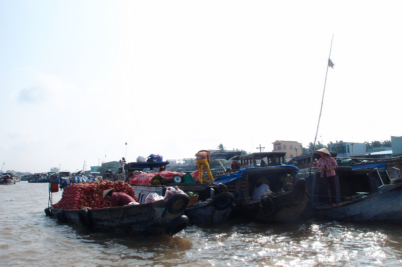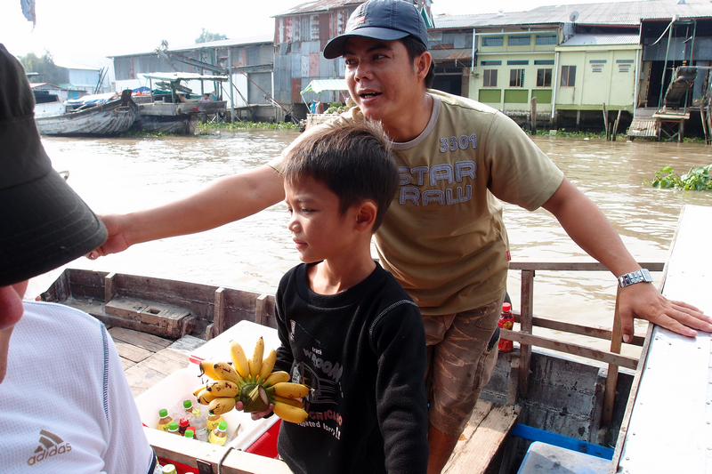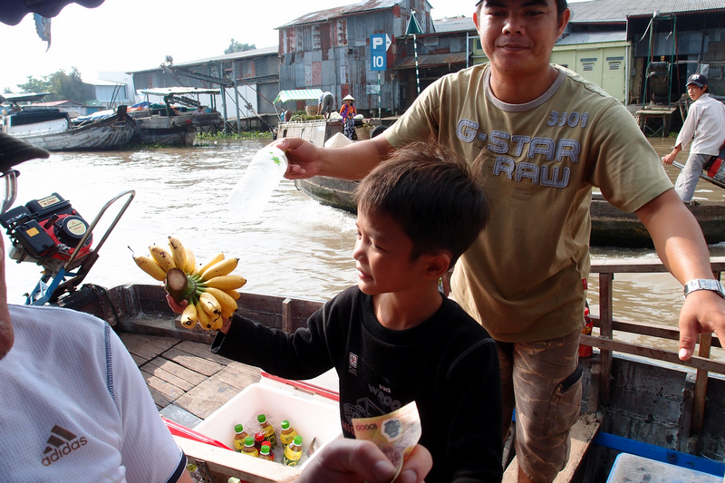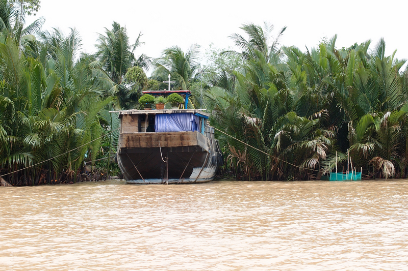 船家的所有生活都可以在湄公河 上完成。我问导游,不会太脏了嘛,这样的河水用来食用。导游说,如果你天天喝,你就会习惯了。