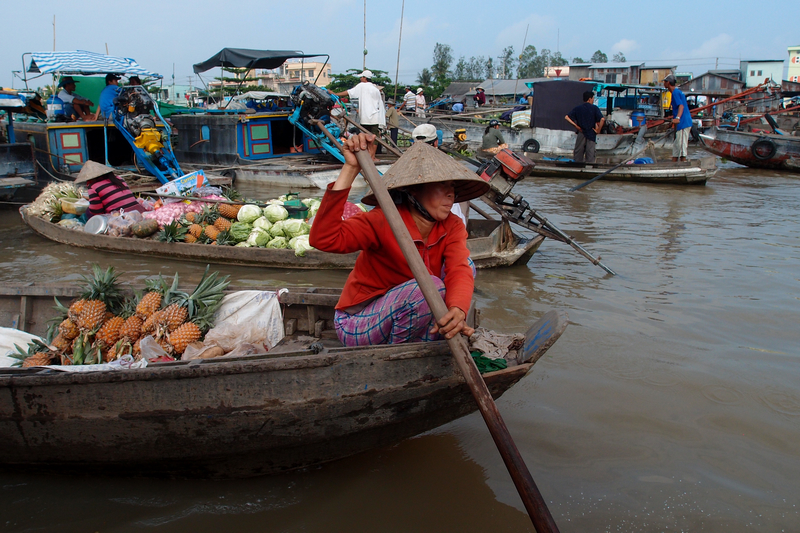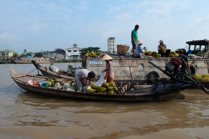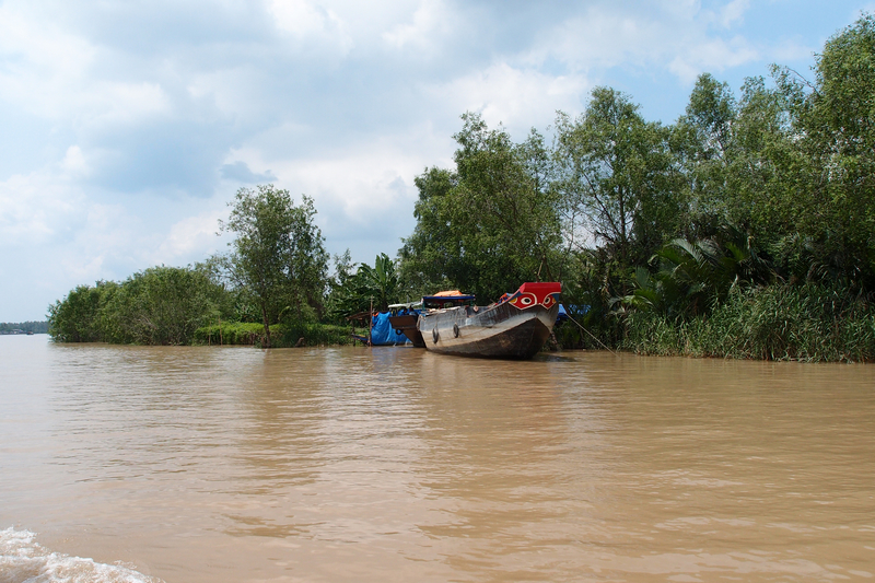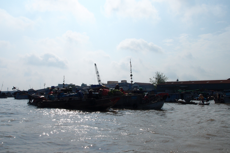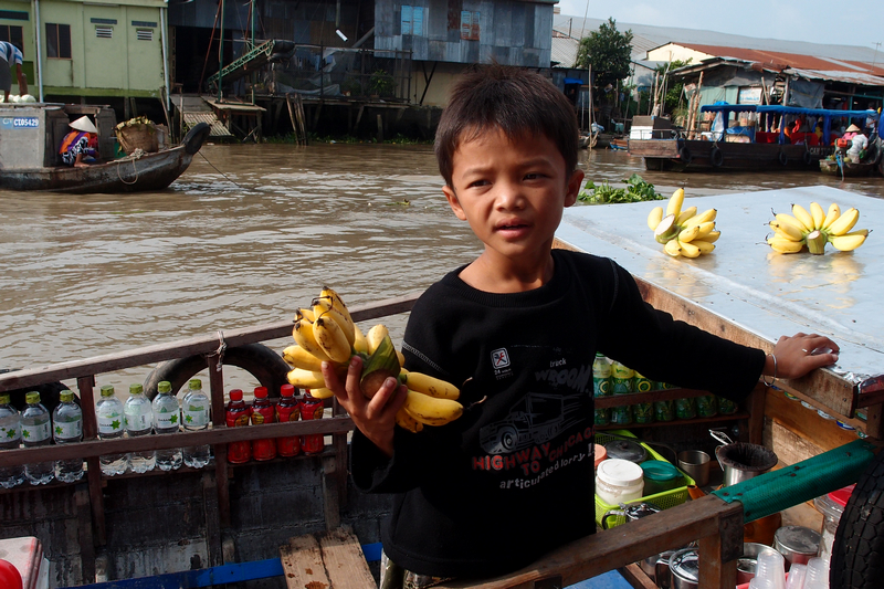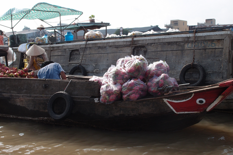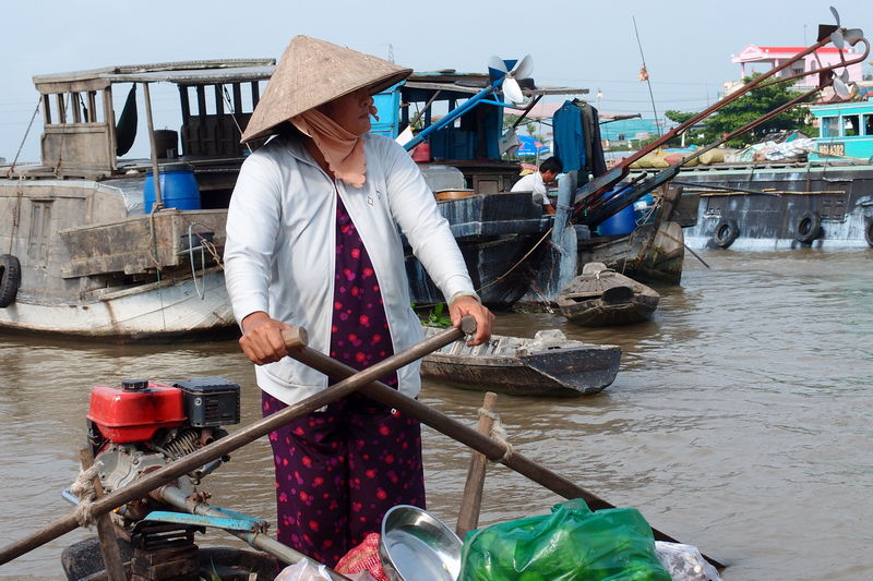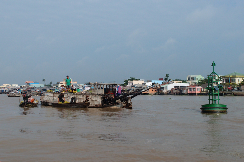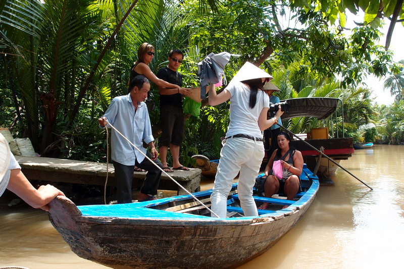 船家的所有生活都可以在湄公河 上完成。我问导游,不会太脏了嘛,这样的河水用来食用。导游说,如果你天天喝,你就会习惯了。