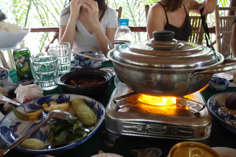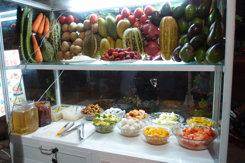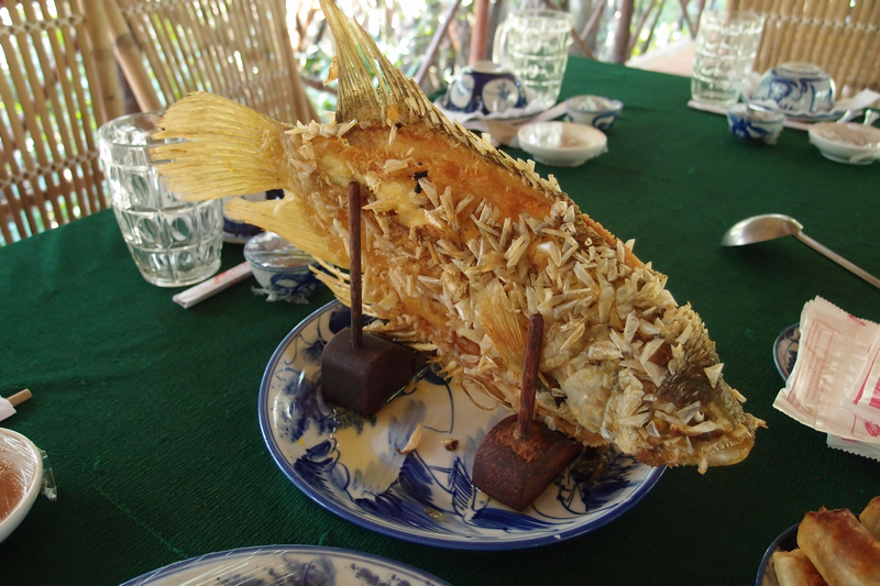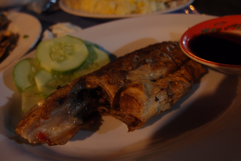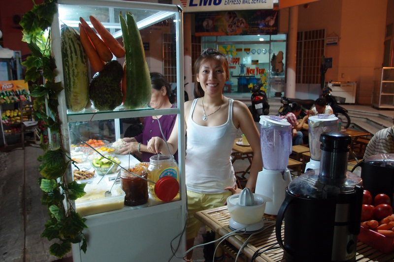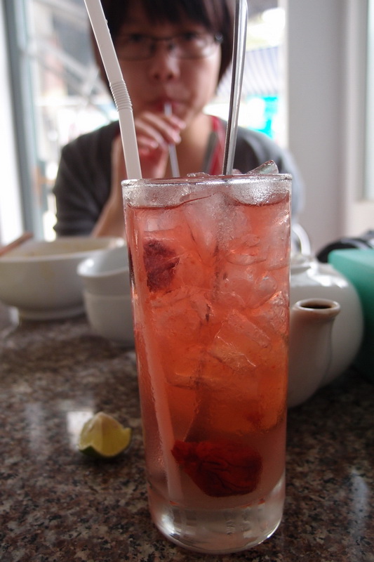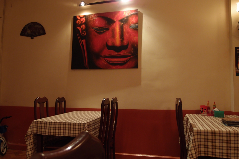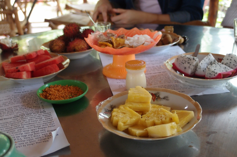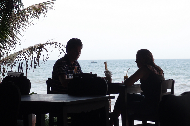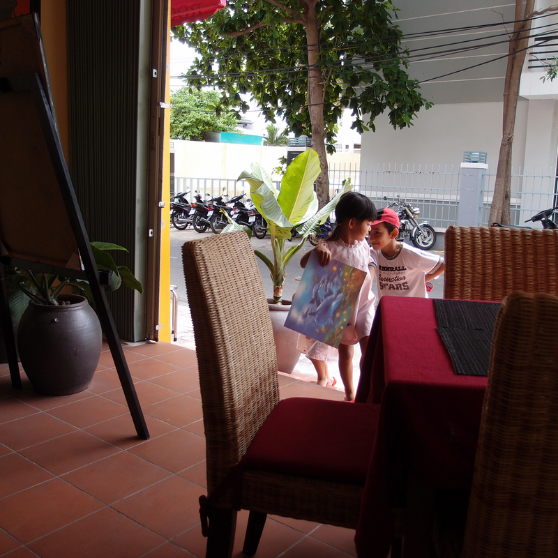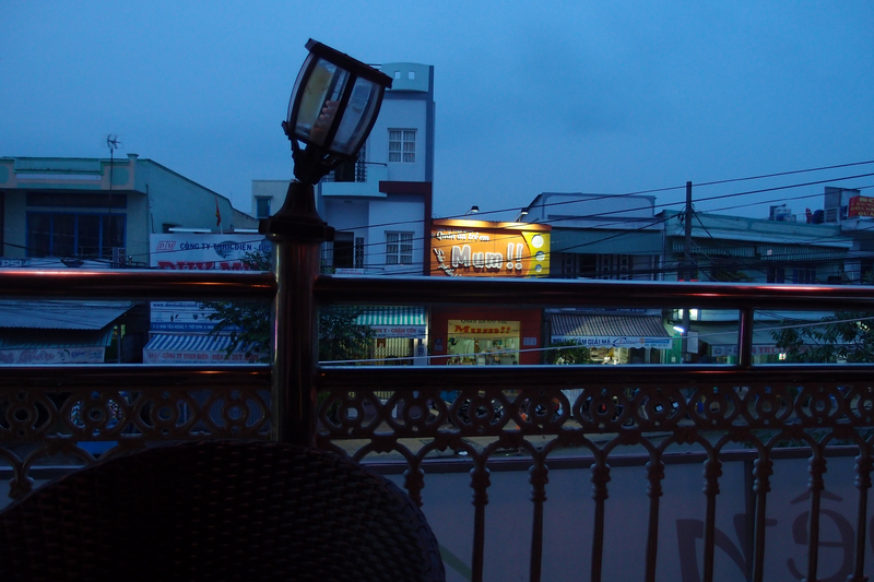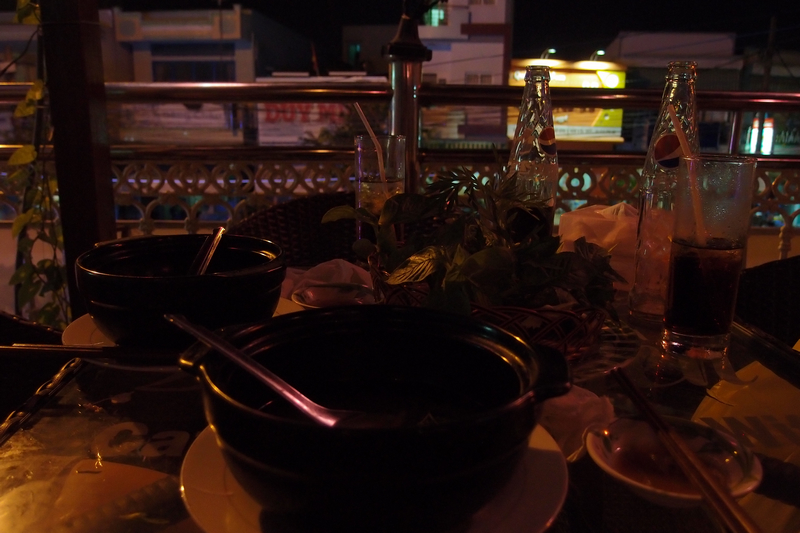 感觉Can Tho吃东西的去处不多啊,一路找来,最后在貌似一条疏疏落落的食街上找到一家很安静的饭馆。服务生同学不大会说英语,他向当时二楼坐我们旁边唯一一桌食客其中的一位美女求助,美女欣然同意帮忙,然后过来一口流利的英文帮助我们传递点餐信息。啊,好nice,好可人的女孩啊。我们都很喜欢热情的她。