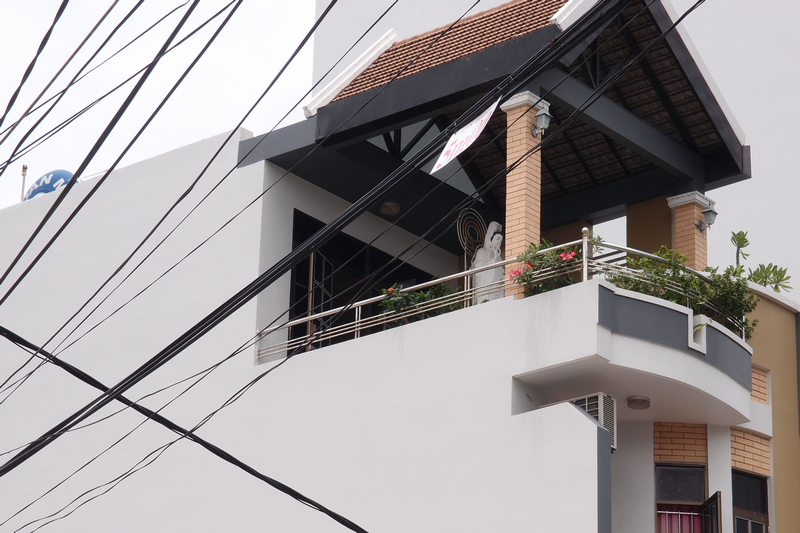 很多人家的房子楼顶都有代表他们宗教信仰的雕像,或是观音,或是耶稣,或是圣母。。。