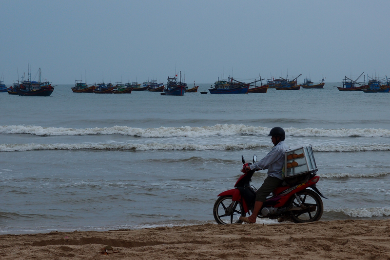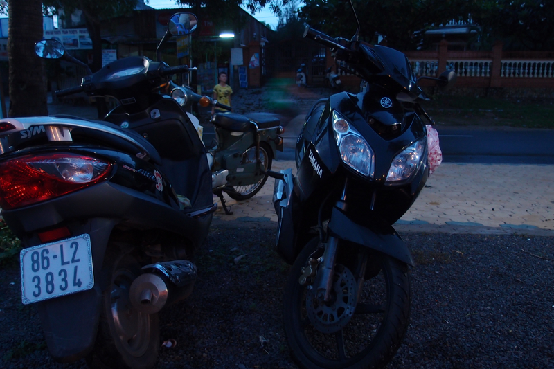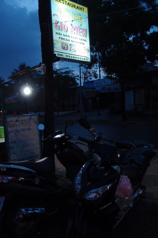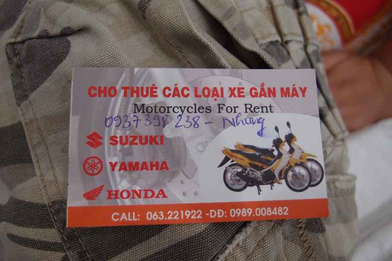 出 门前先在Phu Quy Hotel的rececption预订了明天的四岛游,8刀一人。再租个自动挡的摩托,5刀一天,说好了晚上9点前归还。在各地只要是租摩托,都是油箱空 空如也的,Phu Quy 旁边一家杂货店也出售汽油,25,000一升。小小地加了一升,问他可以开多远,答曰40公里,其实不然。。。