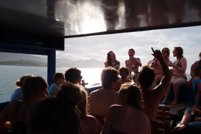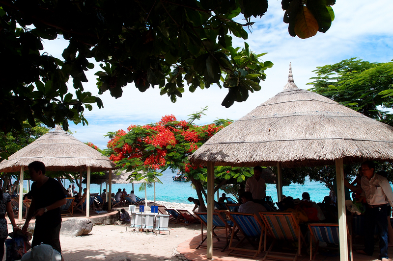 结果,没几分钟我们就上了四人一条的小木船,“功夫”亲自划船,可恨地挡住了我们拍照的视野!!!划了大约15分钟,我们便登上一座清幽的绿岛 ,椰林树影,准备午饭。