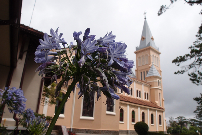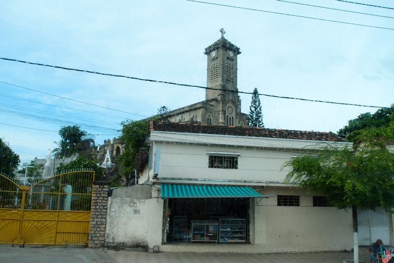 吃饱以后在附近转悠,无意中来到一个教堂,当时满以为这个就是../travel-scenic-spot/mafengwo/16102.html(芽庄 ) 的大教堂,还奇怪怎么那么小哦。。。在旁边的奶品专卖店买了两盒酸奶,这vinamillk品牌的酸奶是../travel-scenic-spot/mafengwo/11055.html(河内 ) 飞../travel-scenic-spot/mafengwo/16102.html(芽庄 ) 的机上吃到的,一吃难忘,从此以后,我们每天都要一到两杯来吃,哈哈。一般小商店原味价格是5000d,芦荟口味非常棒,强烈推荐,这个口味要6000d。