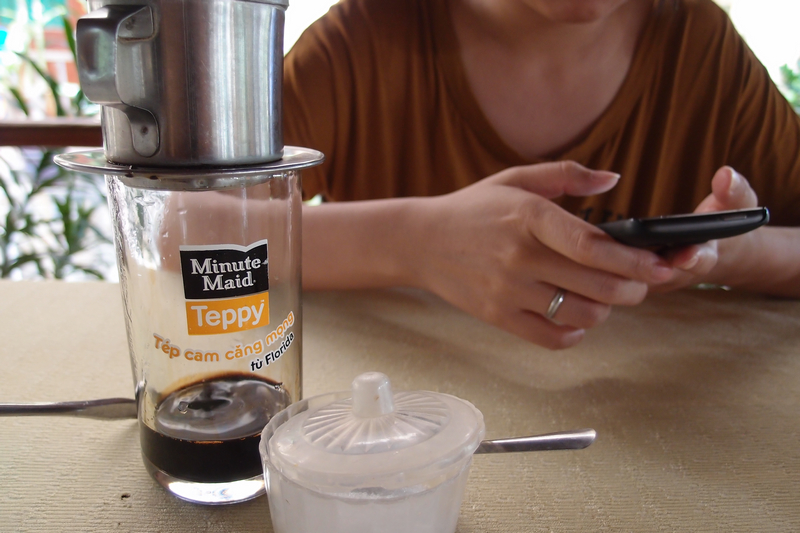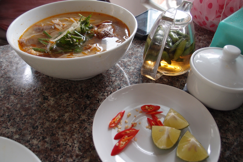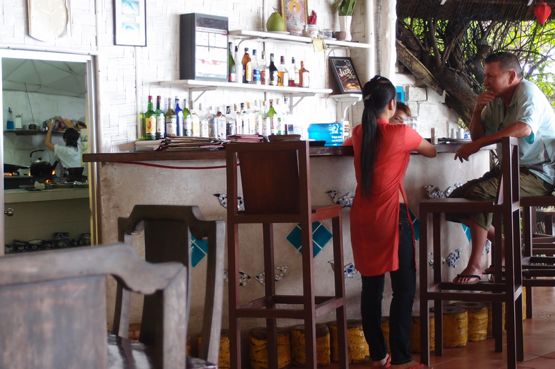 这 个时候已经接近11点,饥肠辘辘啊,沿着sinh tourist的街继续往下开,小路向左一拐,右手边出现了一条清幽的小巷,有家小小的食店吸引了我的注意力,刚把刹车一抓,速度略微一听,马上有美女拿 着menu迎出来,招呼我们看看。这里吃粉为主,每样东西基本都是40,000。再仔细一看menu上面,赫然印着老板娘的照片,就是眼前的美女。很有热 带火辣风情的感觉喔,而店里的装修又非常别致,好吧,../travel-scenic-spot/mafengwo/10180.html(越南 ) 之旅第一顿就在这里解决好了。虽然没有感觉东西很好吃,不过我觉得冰咖啡不错(小米不认同),另她们家里几个MM的态度都非常热情,亲切的笑容总是让你如沐春风,这样也就够了。
