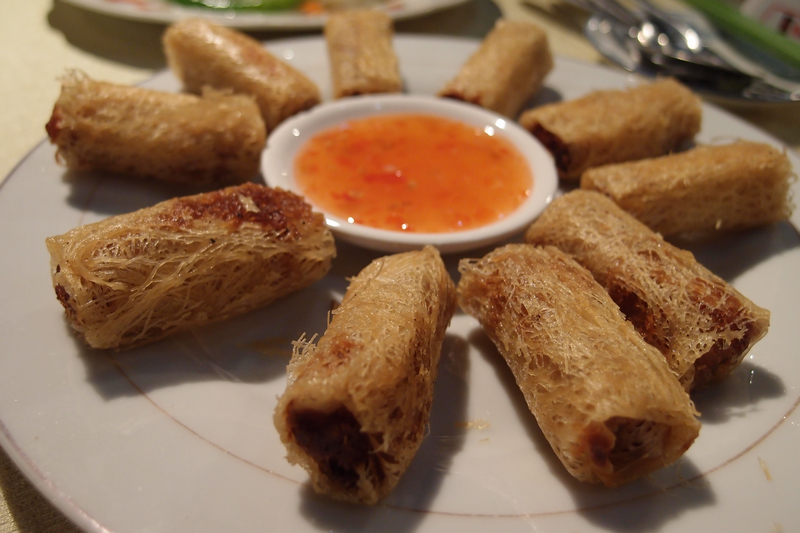 我们的等待,主要是让这位服务生帮我们把鱼肉拆下来,然后夹在这些薄皮当中做纸皮春卷。我觉得我还是相当适应这种口味的。