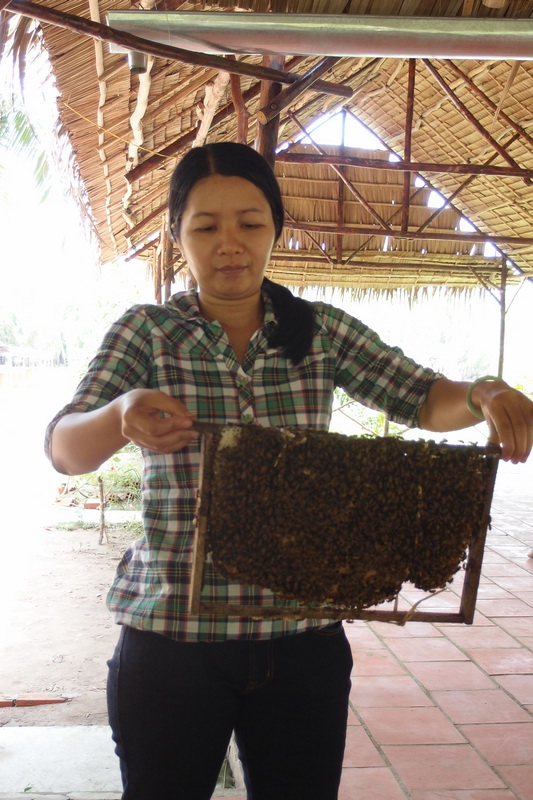 小船终于停泊,我们登上一个小绿庄,原来这一站的行程是推销蜜蜂产品及听越南 传统歌曲
