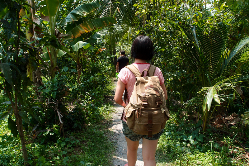 我们的导游名字发音很像“功夫”,于是我其实很想喊他“Panda”。他是个爱开玩笑的家伙,他告诉我们说水里 会有很多的鳄鱼,当我们坐完tuk tuk车,又被他引入一条田间小道,他说,我们讲要在田里走一个小时,然后到达吃饭的地方。要知道,我早已经跟他哭诉,说我饿了呢。。。