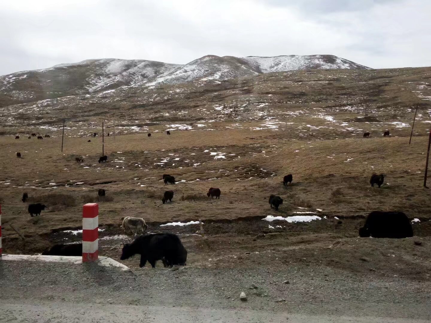 从拉卜楞镇郎木寺,碰到了羊堵路,越往郎木寺走海拔更高气温更低,连绵不断的雪山,黢黑的牦牛,感觉自己有肉吃了。僧人在车上吃着自带的食物,我看到了高原上的草莓,眼馋了一下,吃吧,你们吃吧,长那么大的草莓,打了激素的。