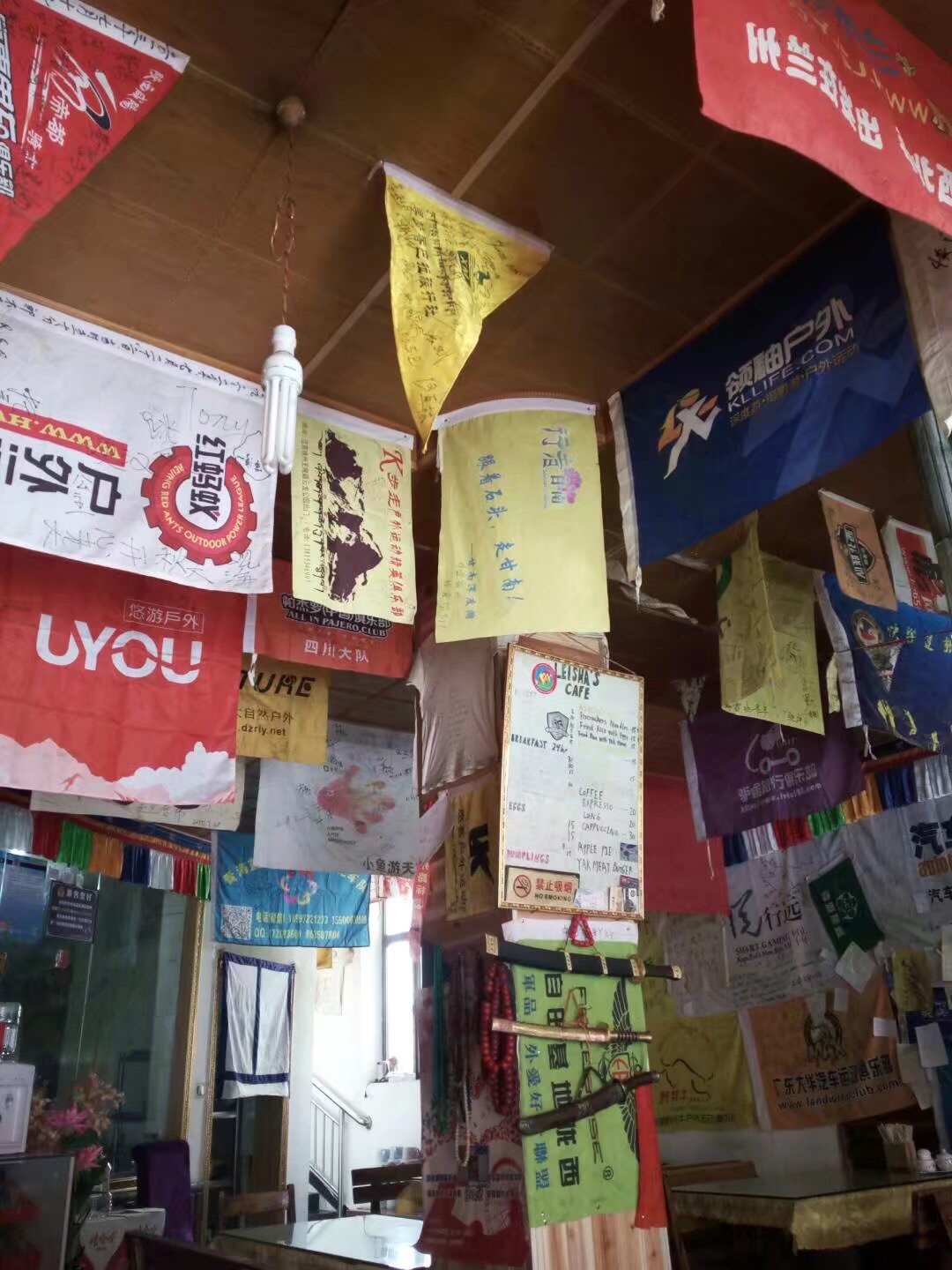 到了郎木镇,司机帮我取行李,他说“你胆子很大嘛,一个人跑那么远”。我处于蒙逼状态,他怎么知道我从哪里来。拖着行李前往看好了的青旅,被告知正在装修,无法入住。走到青旅对面躲太阳,用手机搜附近的旅馆都没有找到合适的,装修工人对我招手,看了看周围只有我确定是在叫我。他说“你到上面去看看吧,实在没住的免费让你在上面住一晚。”我上楼看了一下,没电没水没卫生间,地上全是装修工具。打算将就一晚时,老板让我找到了现在的这个青旅,路上又碰到了大巴司机,他给我指的路,虽然没卫生间,没有热水,房间自带冰箱降温功能,可能是个男士六人间,好在能落脚