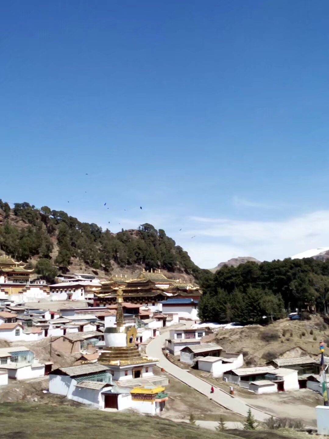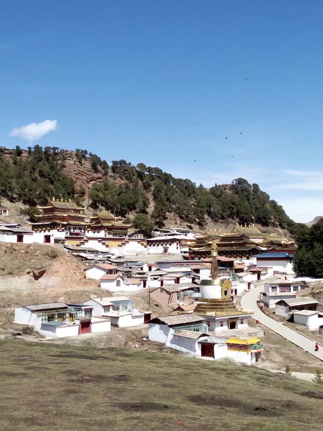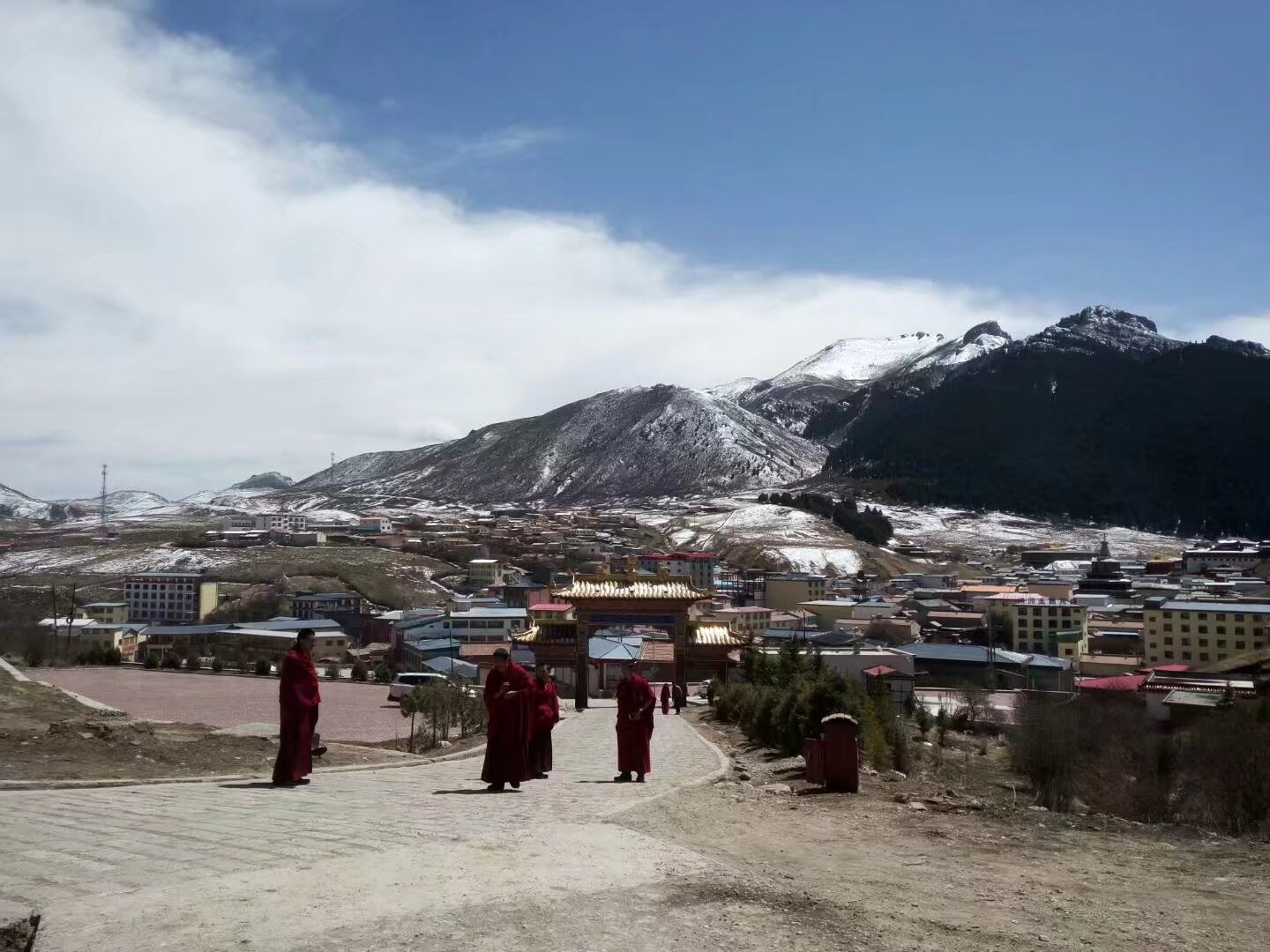 吃完饭去郎木寺,门口没有人,纠结小会发现有两个人没买门票就进了寺庙,跟在别人后面一起溜了进去。走了大约十米,前方两个人被僧人逮到买了门票才能参观,我支付宝出了问题一直刷不出来,僧人说“算了,你进去吧”