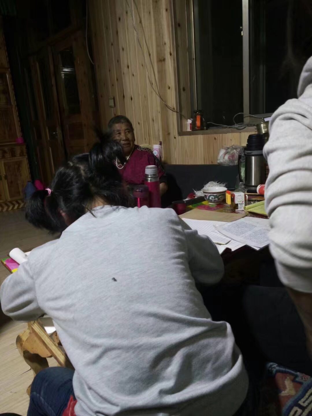 晚上她在辅助妹妹们做作业